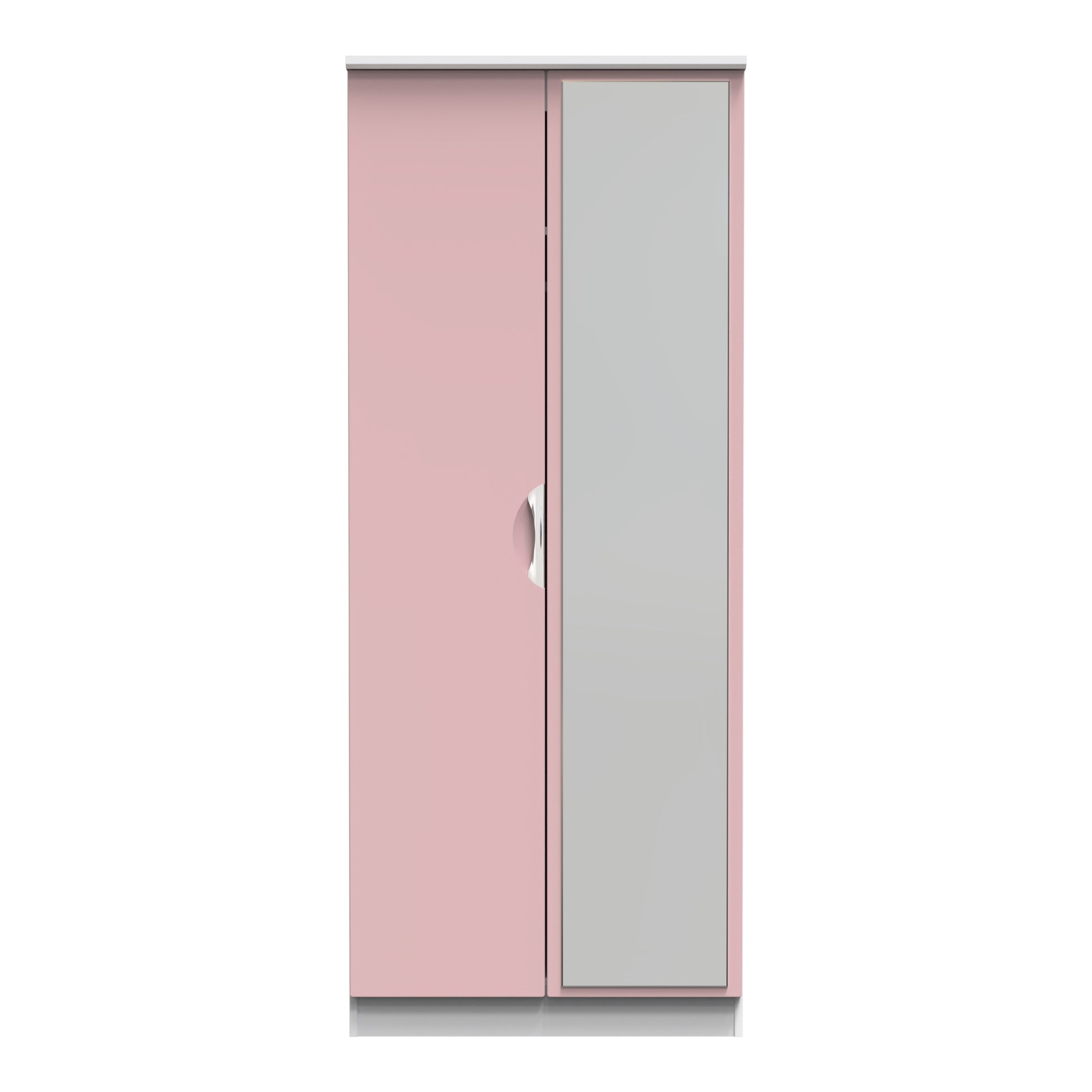 Camden Tall Mirror Wardrobe Pink & White 2 Doors 1 Shelf 182cm