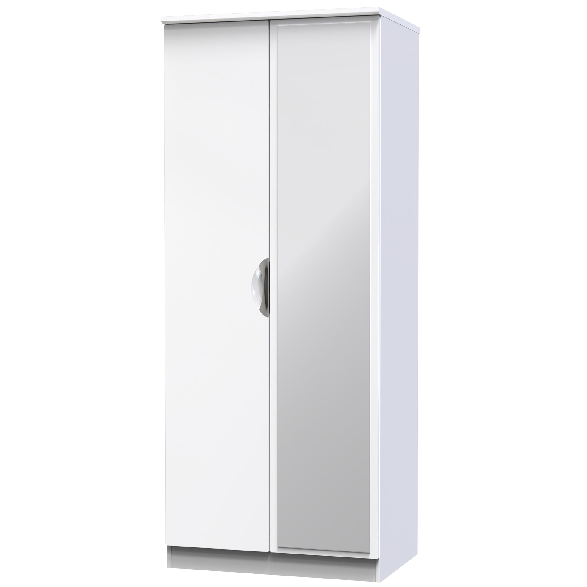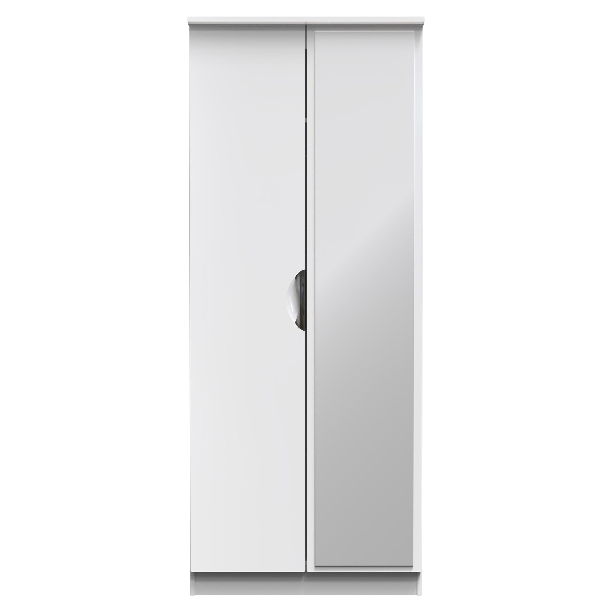 Camden Tall Mirror Wardrobe White 2 Doors 1 Shelf 182cm