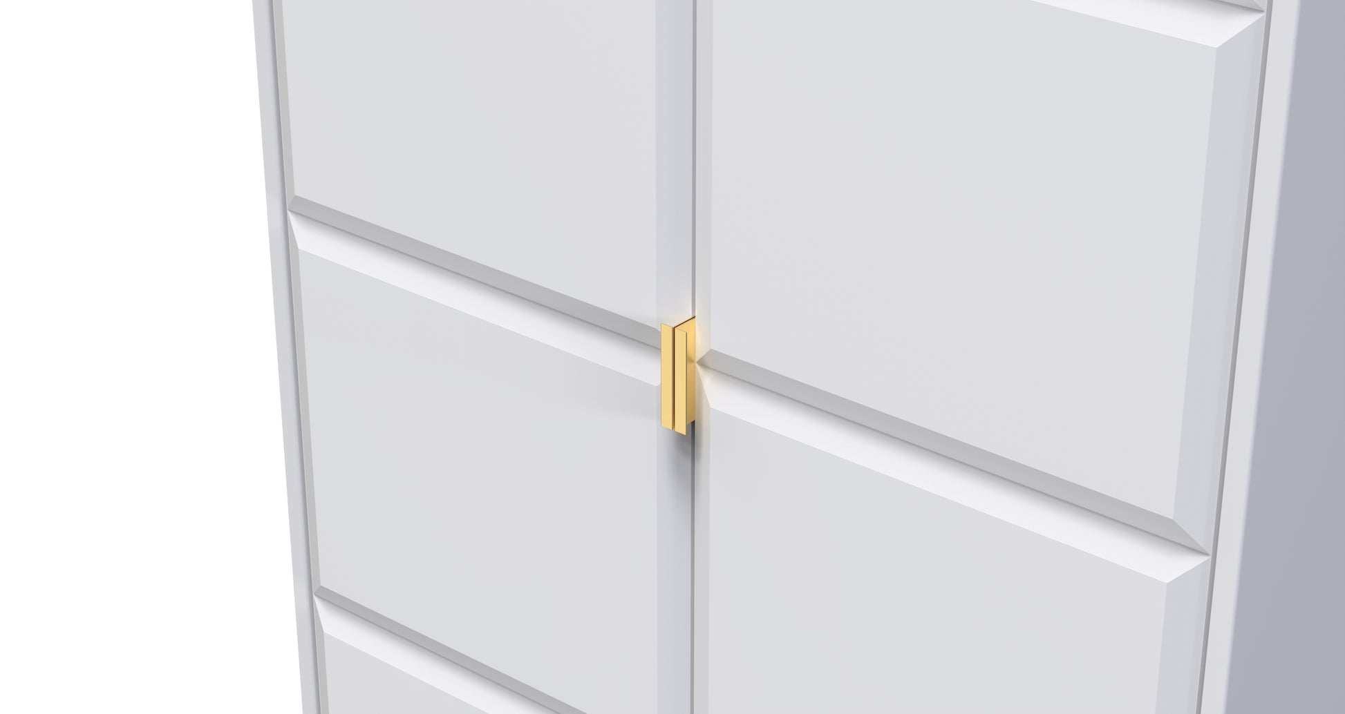 This tall double door wardrobe is perfect for any bedroom. A modern and distinctive range. This ranges unique aesthetic is best represented by the distinctive "Cube" patten of the drawer and door fronts. Also features Gold Metal Handles and Gold Hairpin Legs. Comes in a wide range of colours including eye cathching two tone colour combinations. All our furniture is made to order in the United Kingdom, to the highest quality. It is delivered within 10 working days direct to your location of choice by one of our two man delivery teams, and comes fully assembled (although legs may be removed to prevent damage in transit). Part of the Cube Collection.