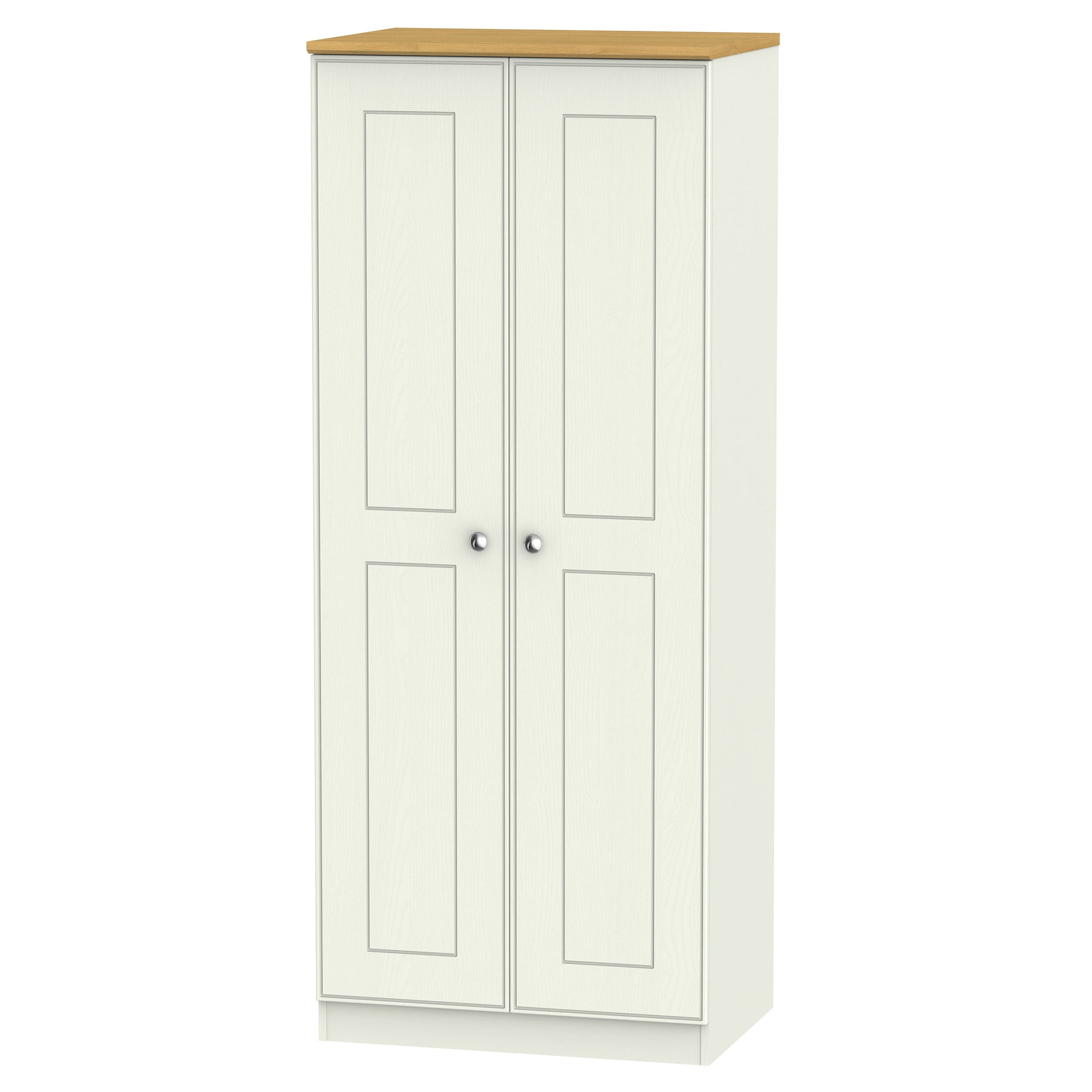 Victoria Tall Wardrobe Cream & Light Oak 2 Doors 1 Shelf 74cm