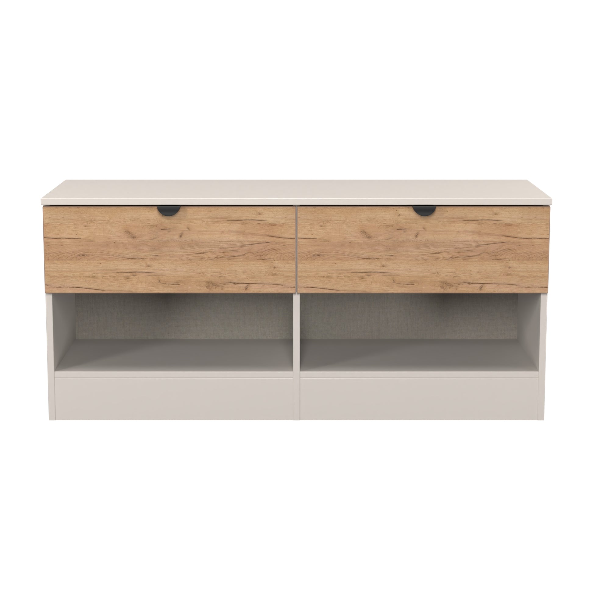 Bora Large Chest of Drawers Oak & Off-White 2 Shelves 2 Drawers 110cm