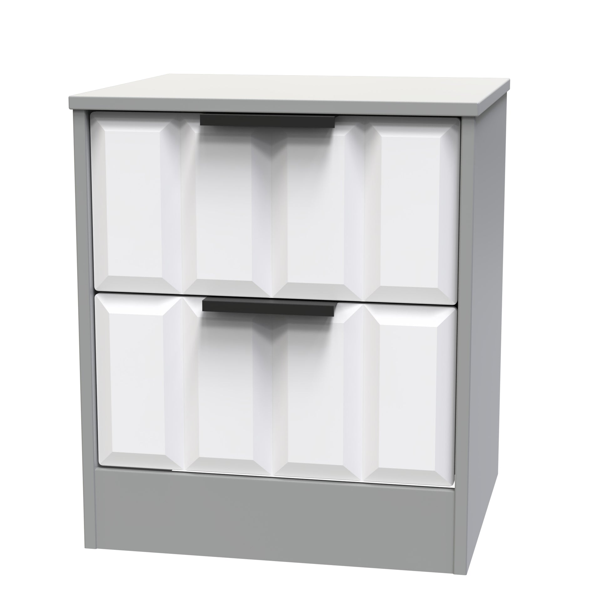 New York C Bedside Table White & Grey 2 Drawers 45cm