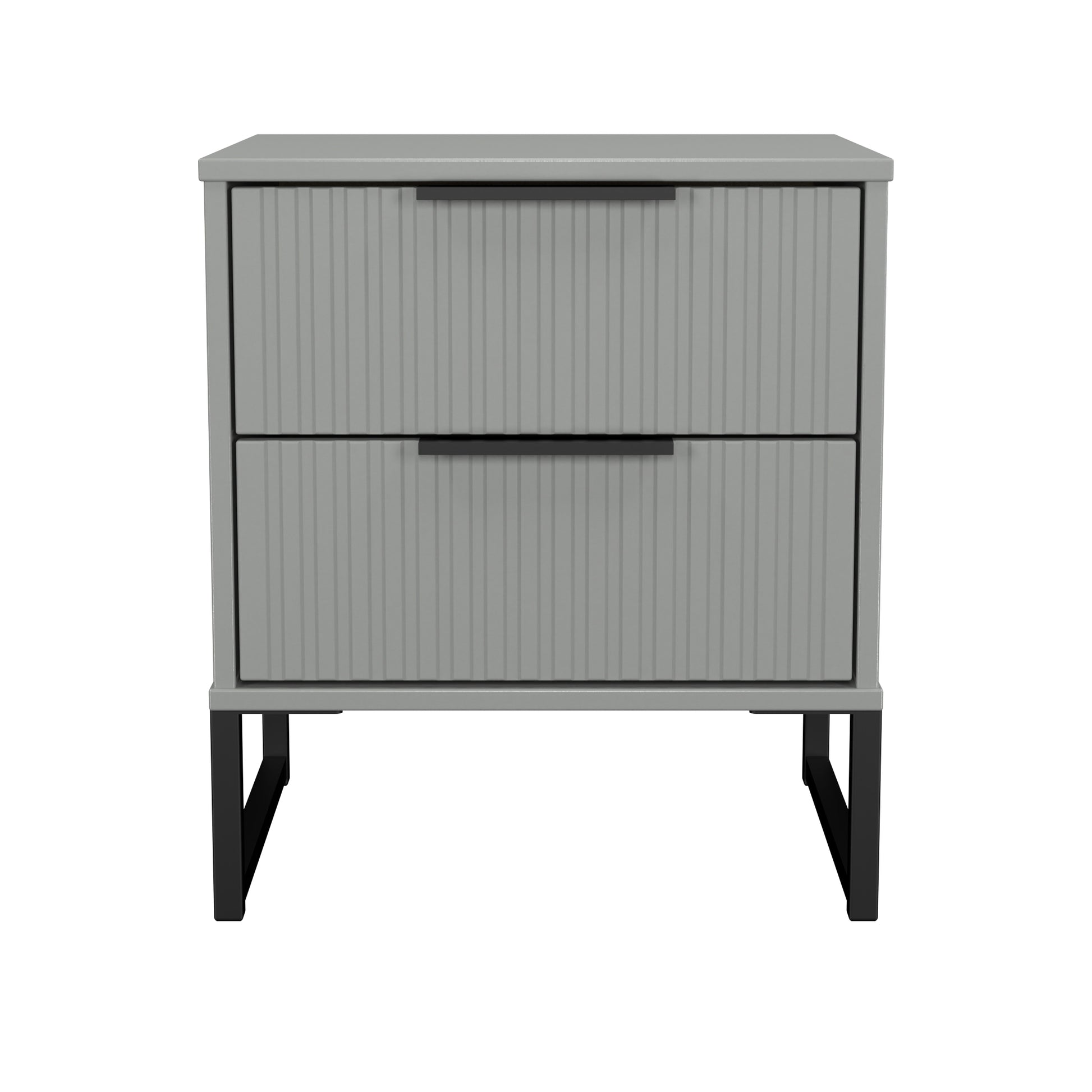 Fluted Bedside Table Grey 2 Drawers 60cm