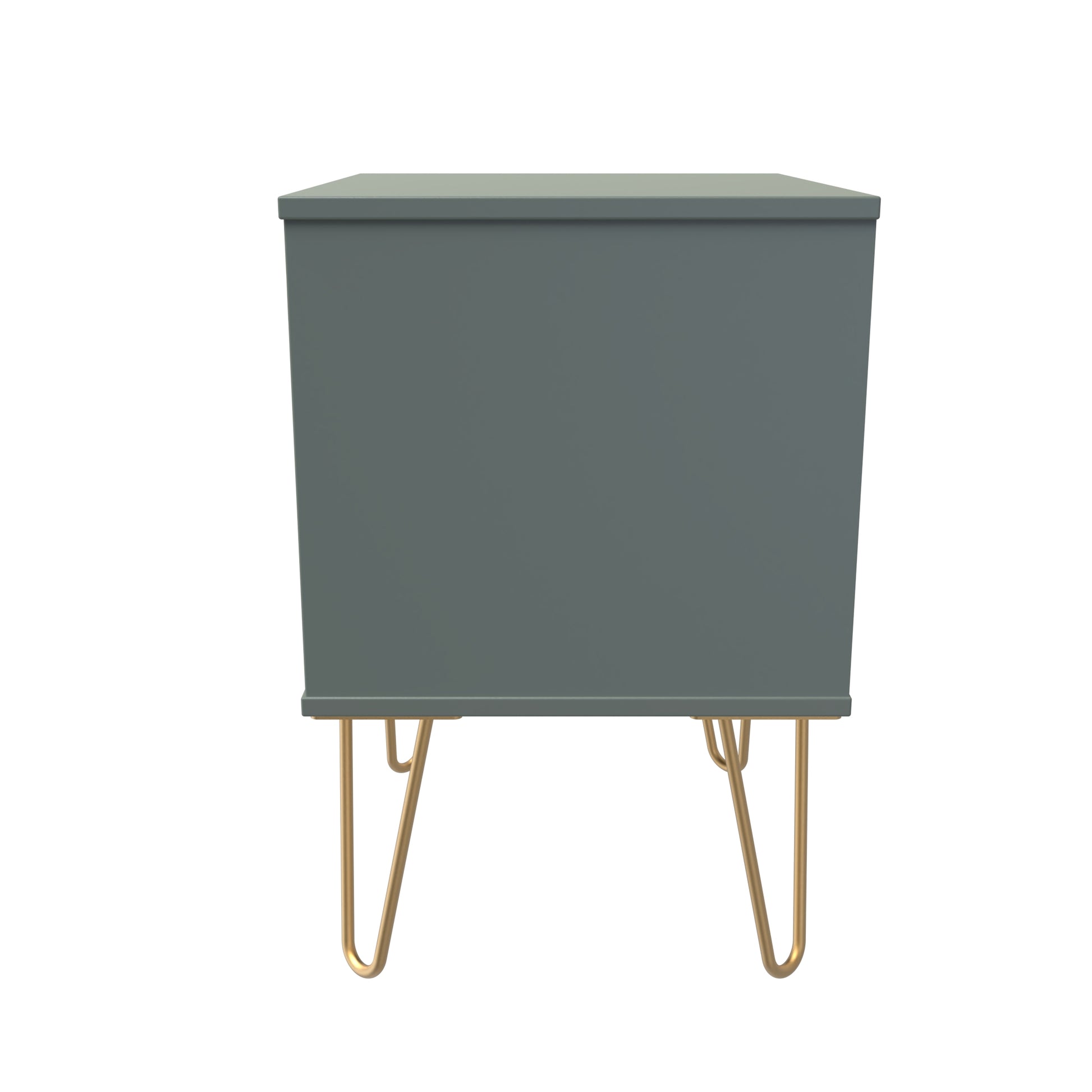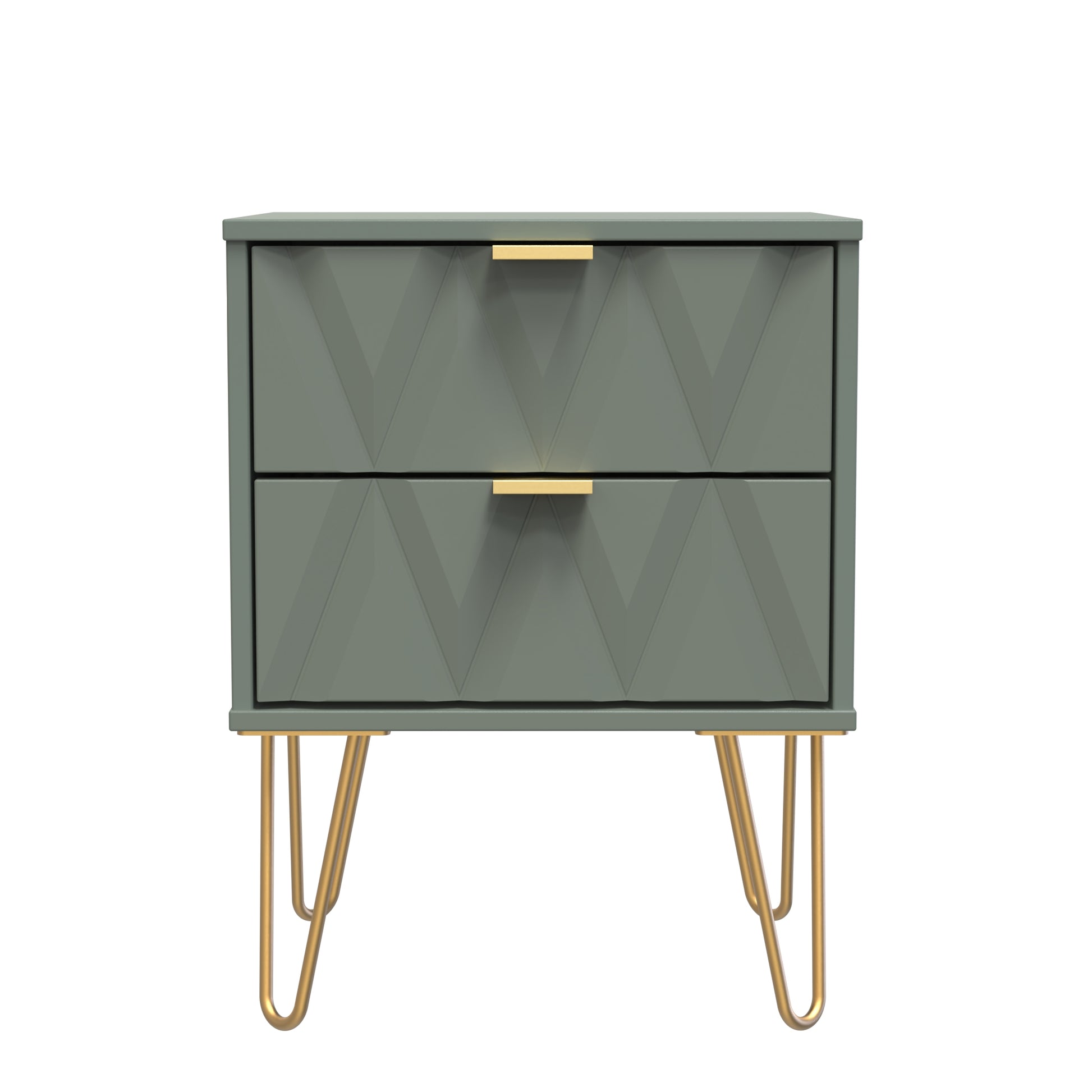 This 2 drawer bedside cabinet is practical and stylish. Perfect for any bedside or as a free standing storage unit. Say hello to contemporary cool with this modern range, with distinctive patterned drawers and a variety of colour options available to compliment any interior design. Gold metal handles and sturdy hairpin legs complete the storage solution. All our furniture is made to order in the United Kingdom, to the highest quality. It is delivered within 10 working days direct to your location of choice by one of our two man delivery teams, and comes fully assembled (although legs may be removed to prevent damage in transit). Part of the Diamond Collection.