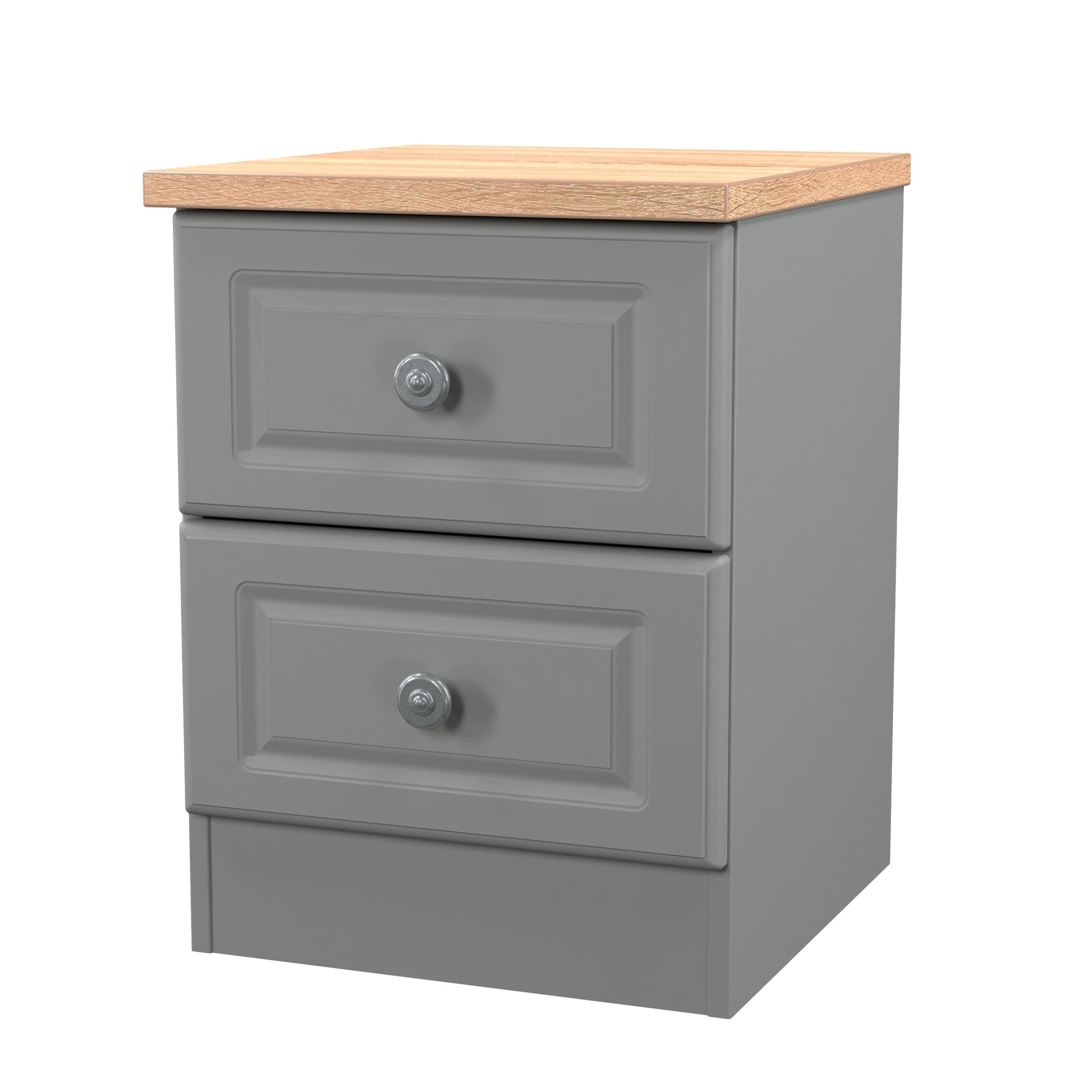 Norfolk Bedside Table Grey & Light Oak 2 Drawers 37cm