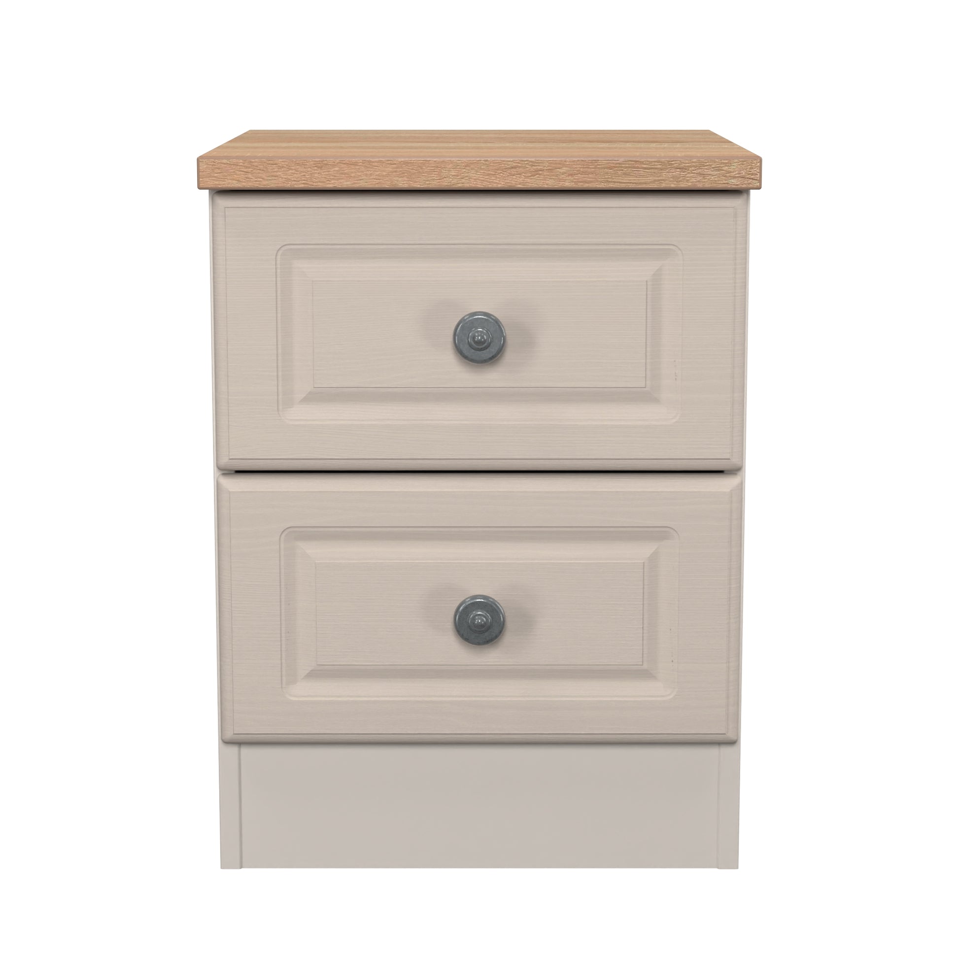 Norfolk Bedside Table Off-white & Light Oak 2 Drawers 37cm