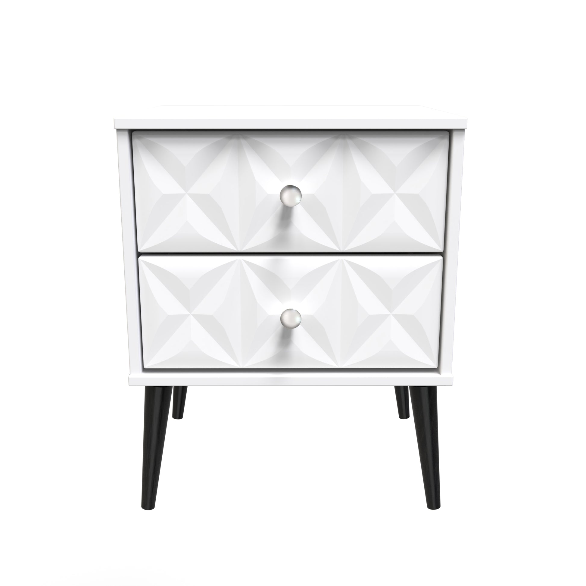 This 2 drawer bedside cabinet is practical and stylish. Perfect for any bedside or as a free standing storage unit. A modern and distinctive range. This ranges unique aesthetic is best represented by the distinctive "Pixel" patten of the drawer and door fronts. Also features Black Metal Handles and Black Hairpin Legs. Comes in a wide range of colours including eye cathching two tone colour combinations. All our furniture is made to order in the United Kingdom, to the highest quality. It is delivered within 10 working days direct to your location of choice by one of our two man delivery teams, and comes fully assembled (although legs may be removed to prevent damage in transit). Part of the Pixel Collection.