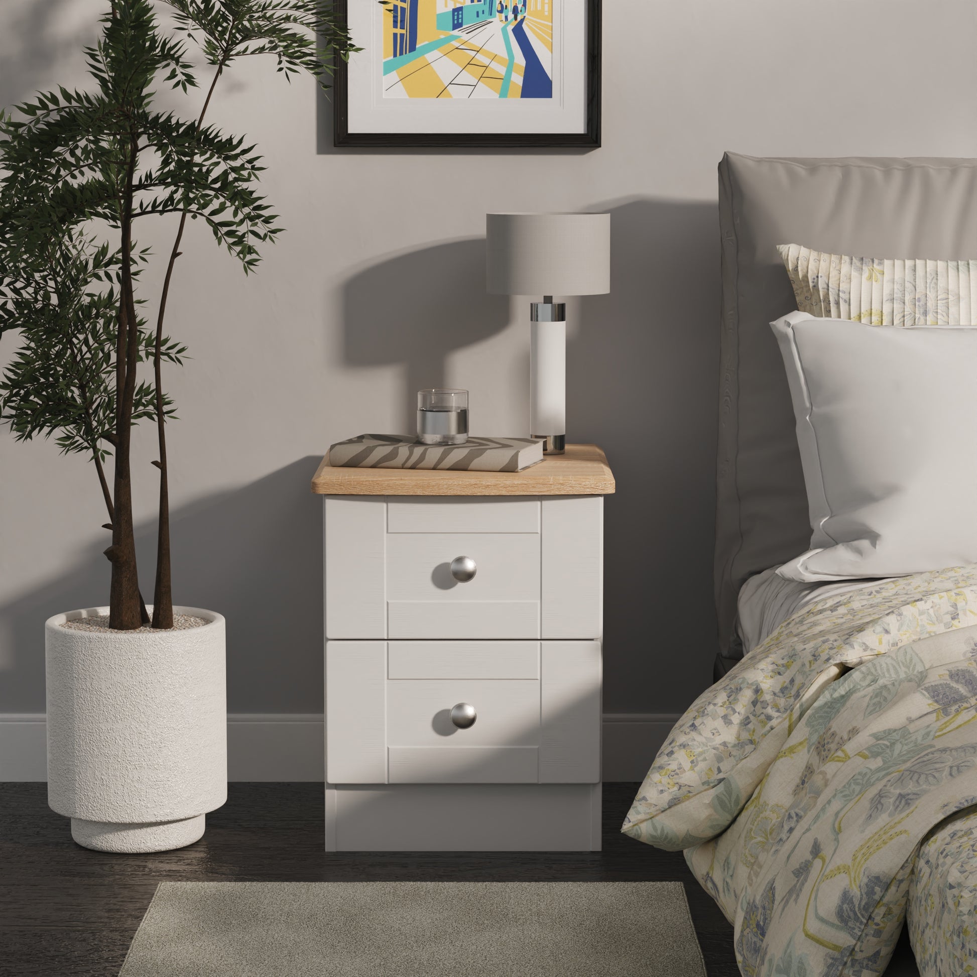 Sussex Bedside Table Grey & Light Oak 2 Drawers 40cm