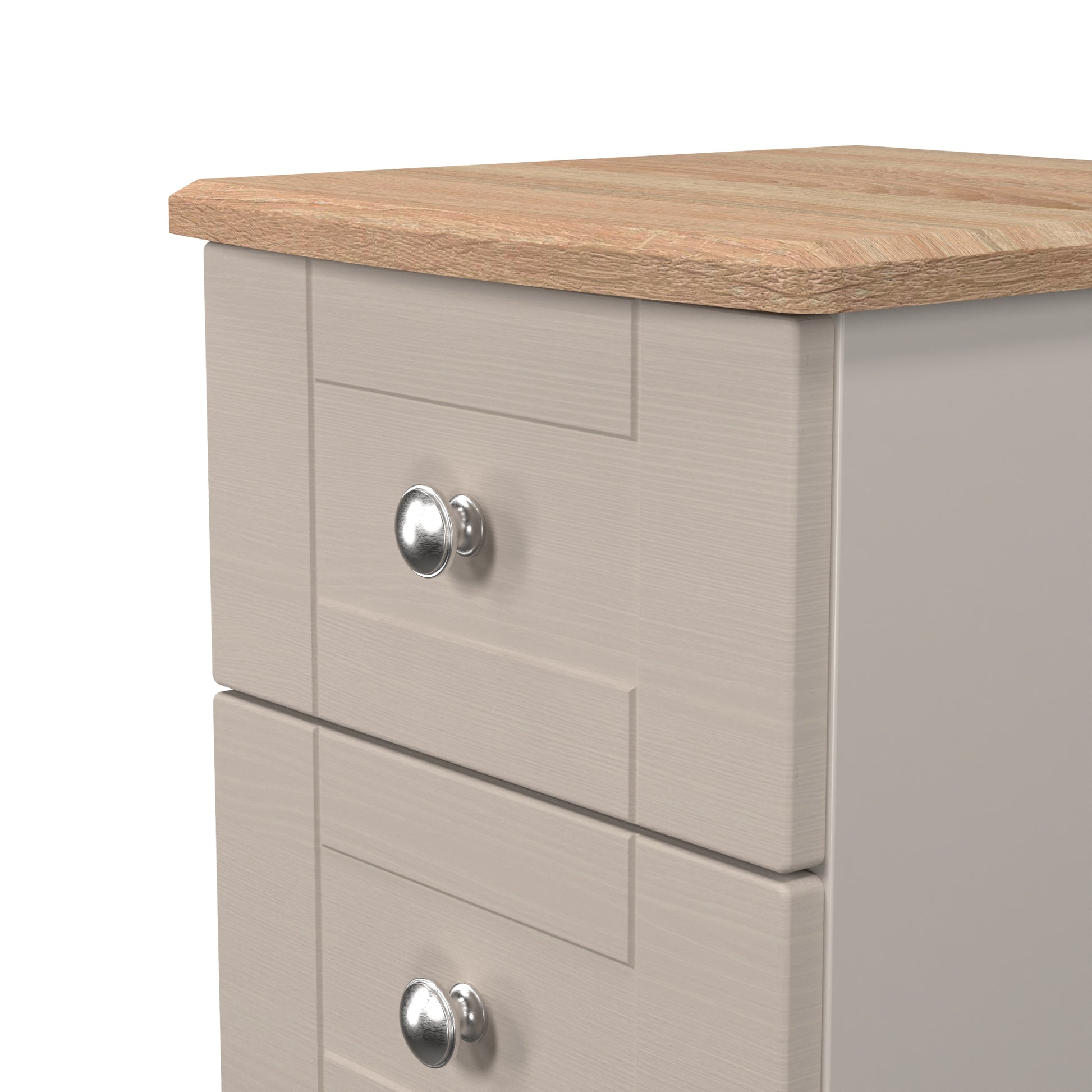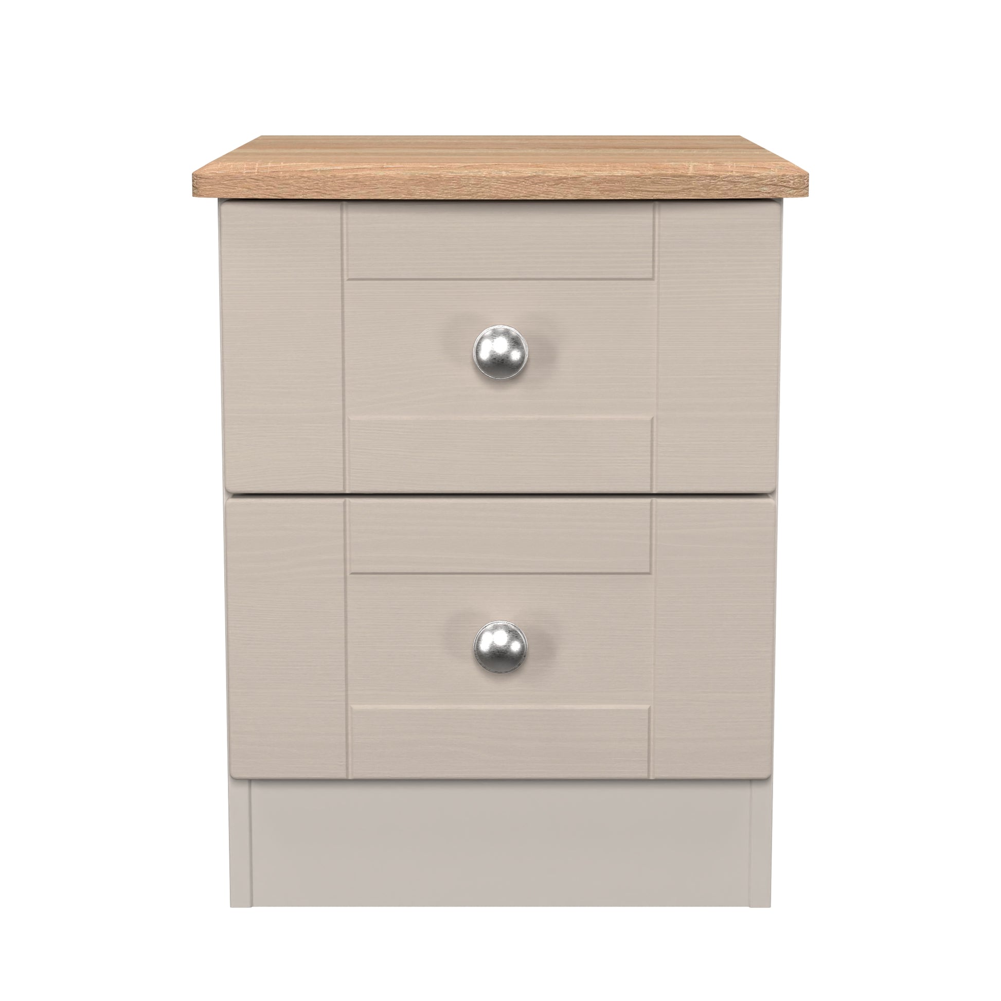 This 2 drawer bedside cabinet is practical and stylish. Perfect for any bedside or as a free standing storage unit. Wood grain effect, panelled design, recessed fronts, contrasting wood top and chrome handles, this traditional Range is a beautifully elegant collection. With this range you have the freedom to choose from a wide range of furniture configurations, allowing you to create the perfect combination to optimise your storage space. All our furniture is made to order in the United Kingdom, to the highest quality. It is delivered within 10 working days direct to your location of choice by one of our two man delivery teams, and comes fully assembled - Please Note that any handles or legs may be removed durning transit to avoid the risk of damage. Part of the Sussex Collection.