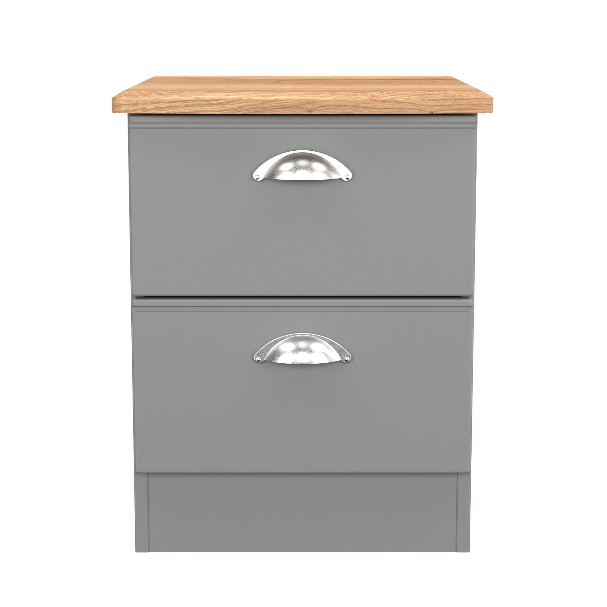 Victoria Bedside Table Grey & Light Oak 2 Drawers 40cm