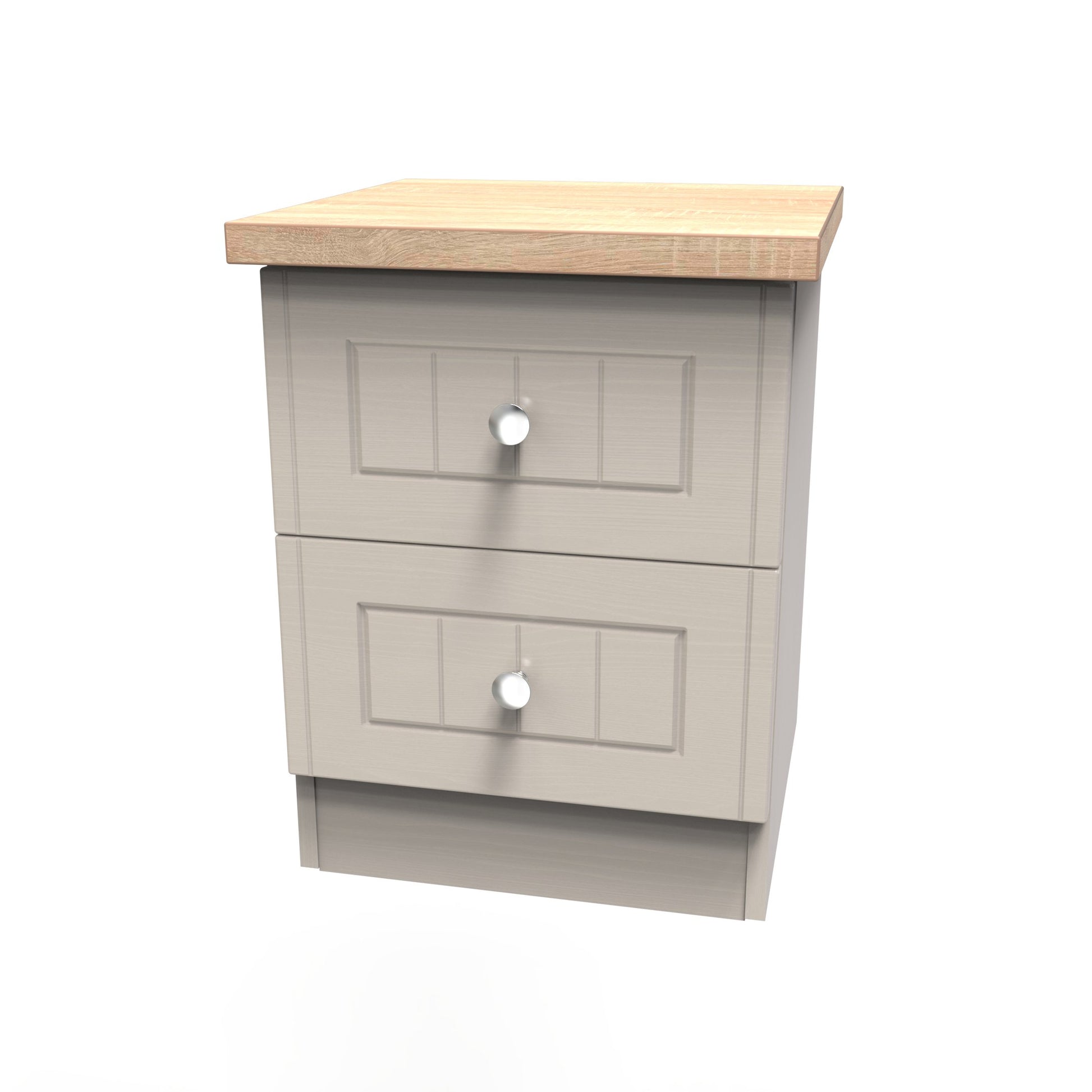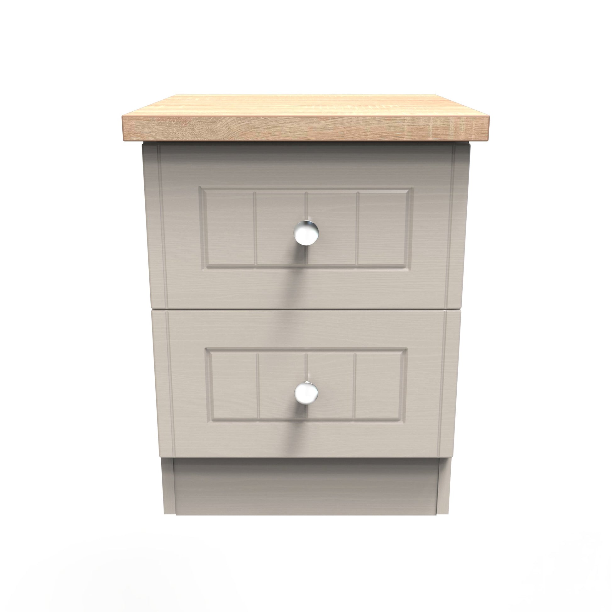 Vienna Bedside Table Off-white & Light Oak 2 Drawers 37cm