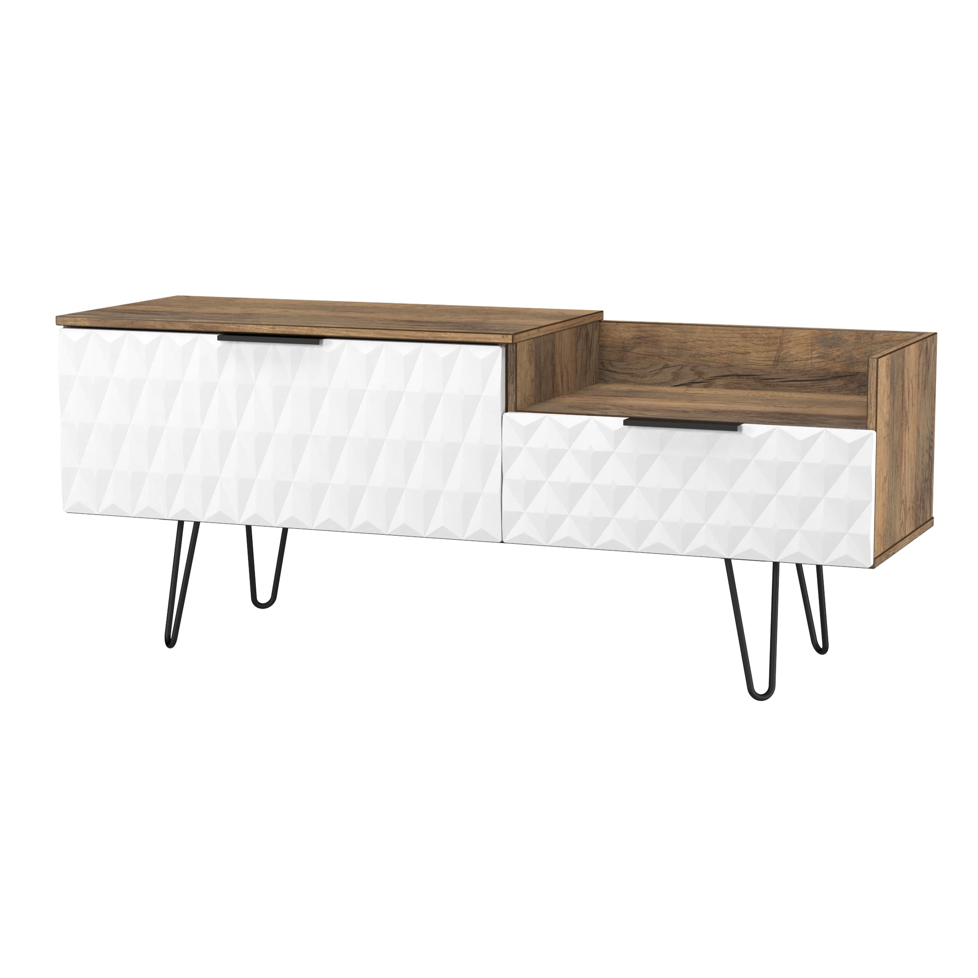 Harlequin TV Unit White & Oak 1 Shelf 2 Drawers 128cm
