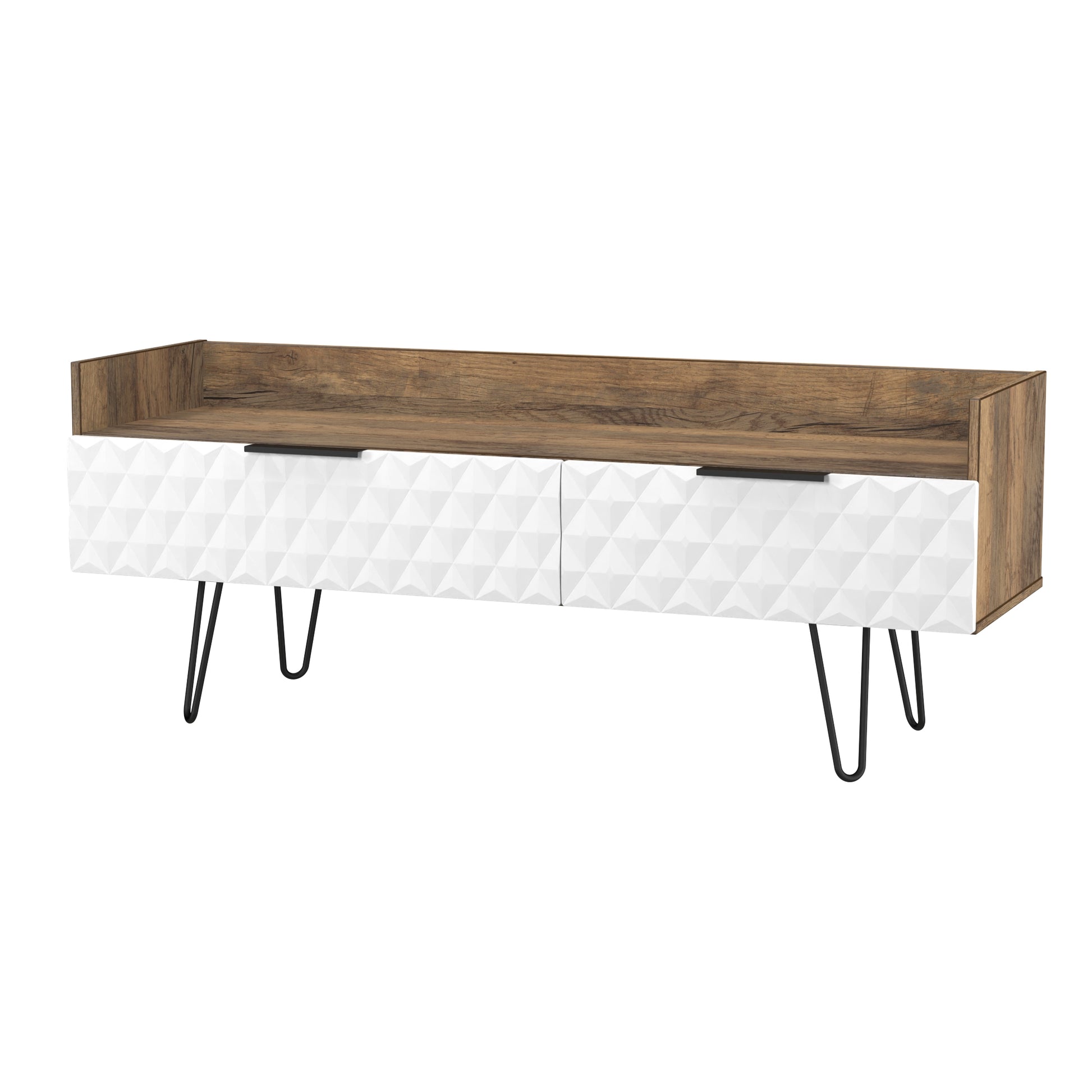 Harlequin TV Unit White & Oak 2 Drawers 128cm