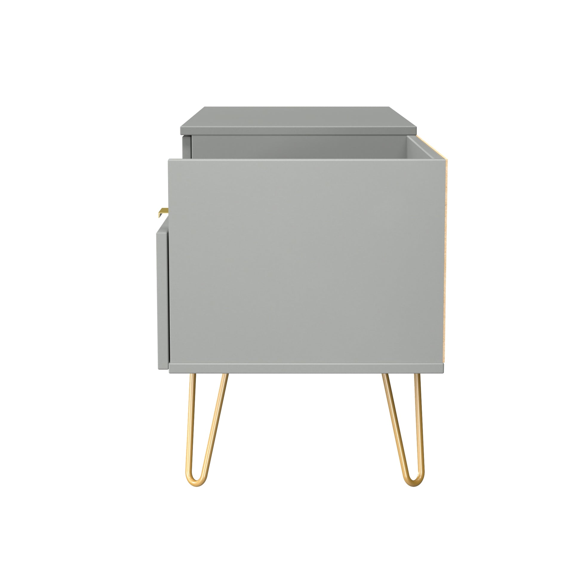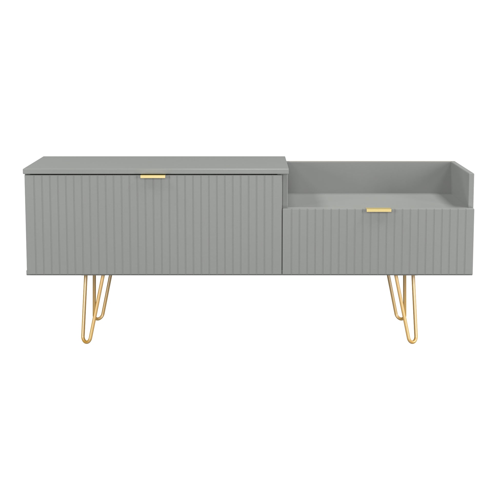 A Sturdy TV Stand, ideal for any living room. A modern and distinctive range. This ranges unique aesthetic is best represented by the distinctive "Linear" patten of the drawer and door fronts. Also features Gold Metal Handles and Gold Hairpin Legs. Comes in a wide range of colours including eye cathching two tone colour combinations. All our furniture is made to order in the United Kingdom, to the highest quality. It is delivered within 10 working days direct to your location of choice by one of our two man delivery teams, and comes fully assembled (although legs may be removed to prevent damage in transit). Part of the Linear Collection.