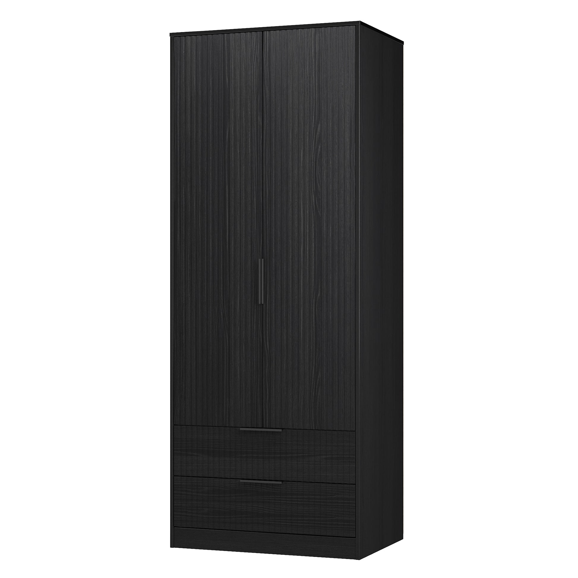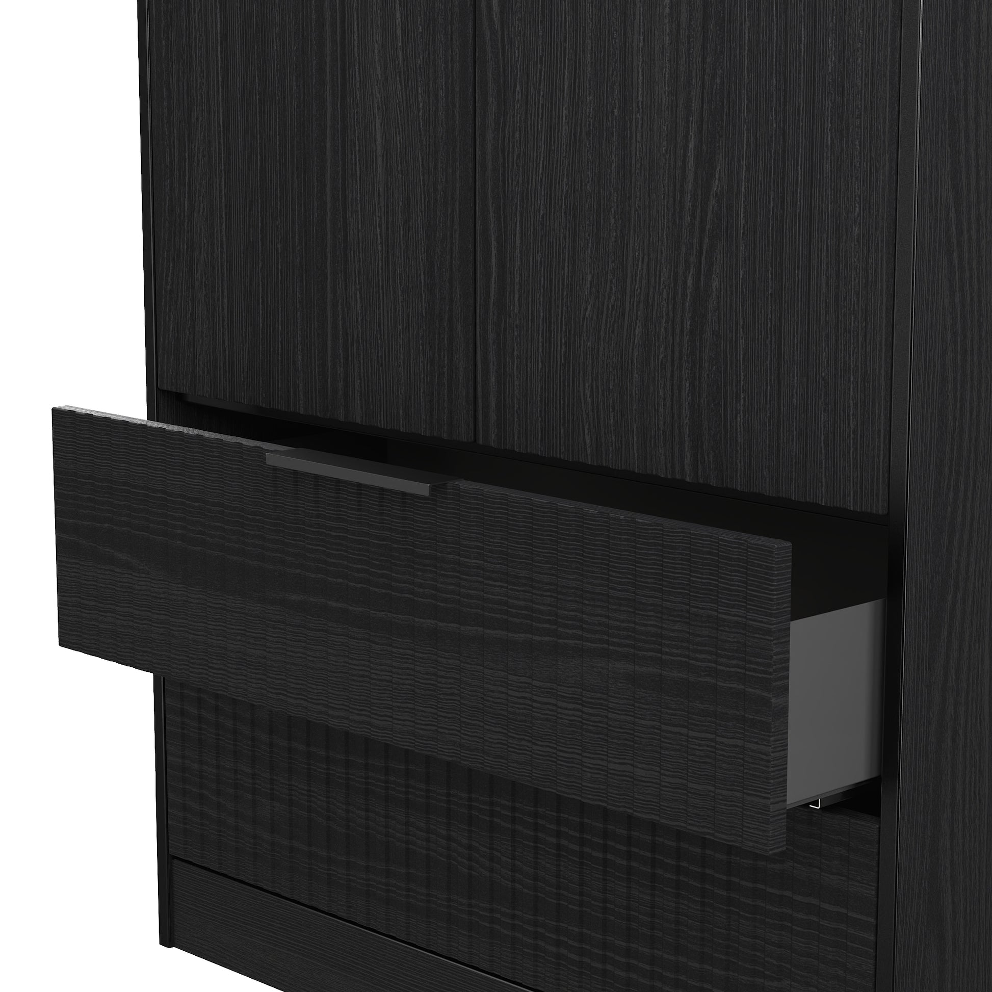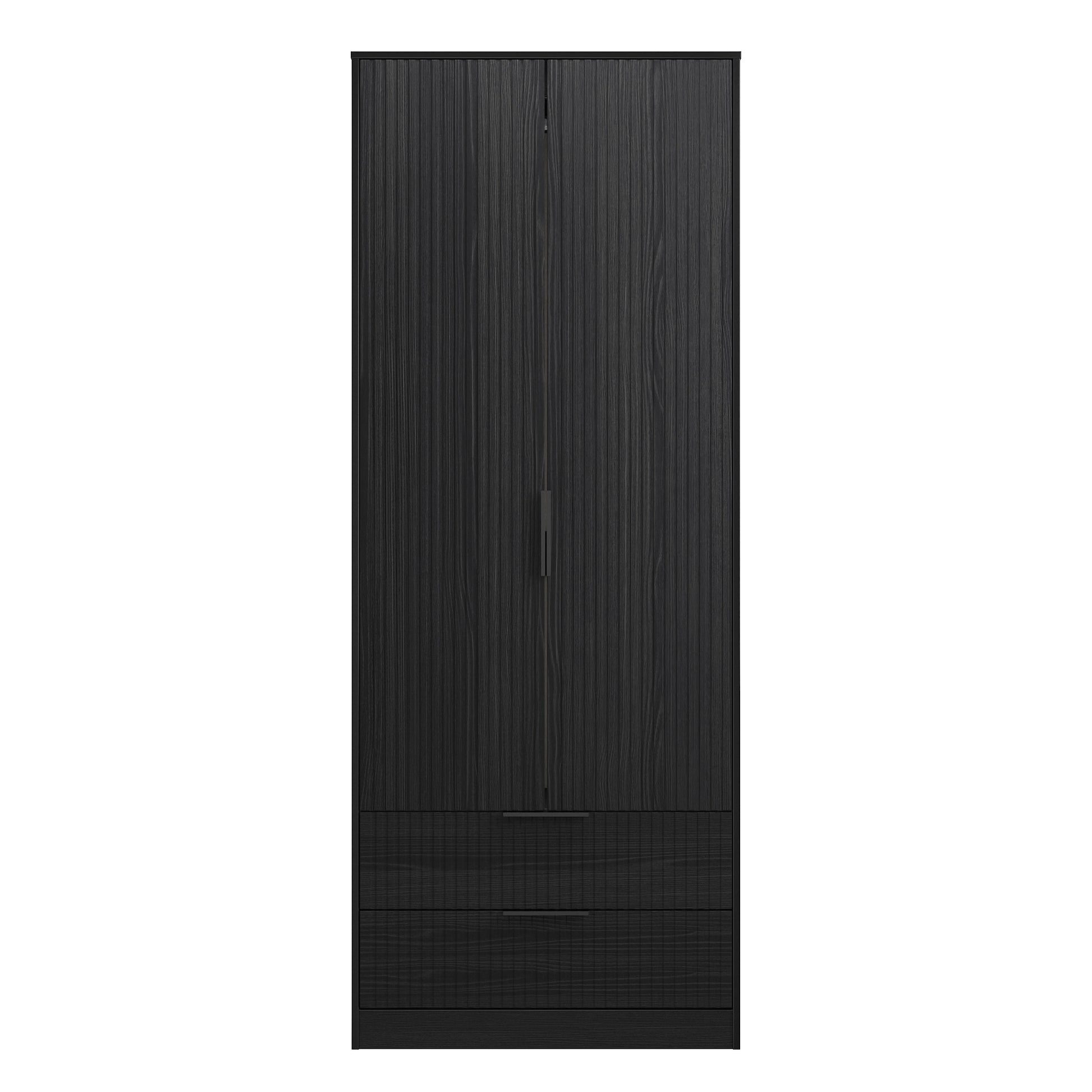 Fluted Tall Wardrobe Black 2 Drawers 197cm