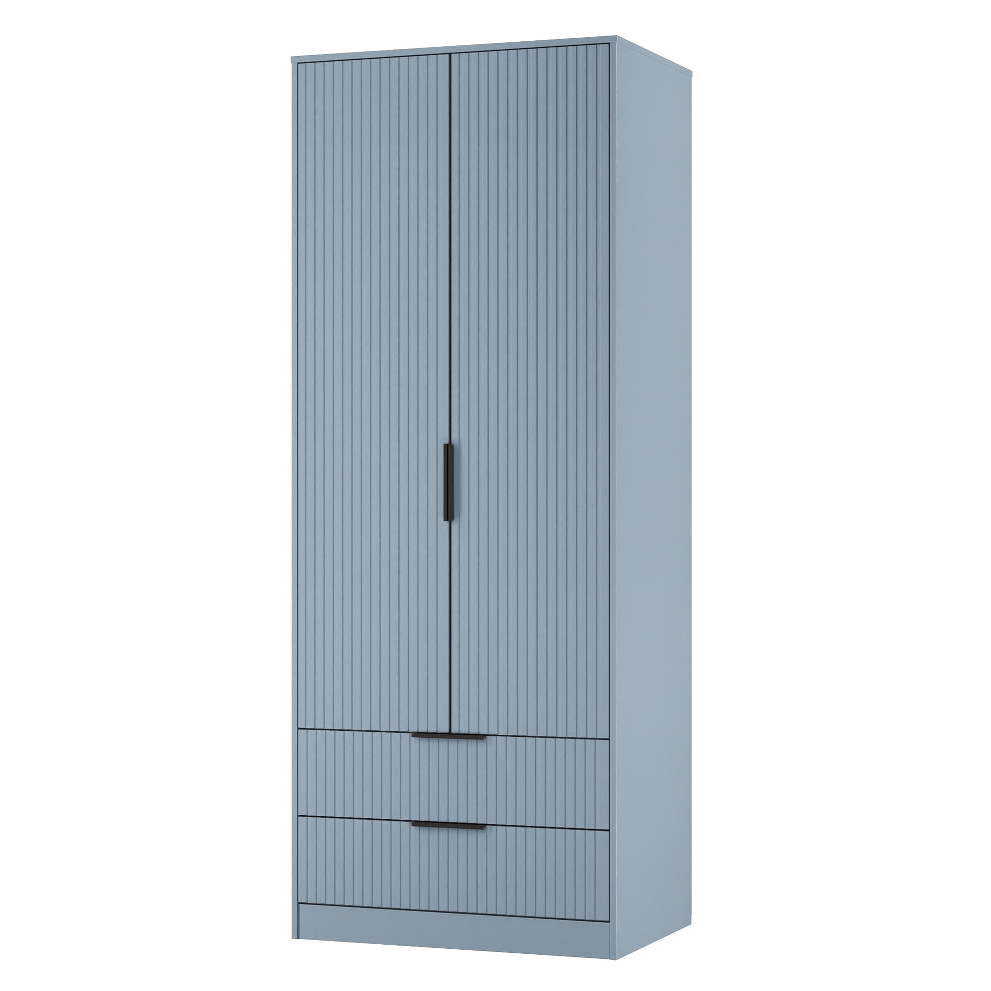 Fluted Tall Wardrobe Light Blue 2 Drawers 197cm
