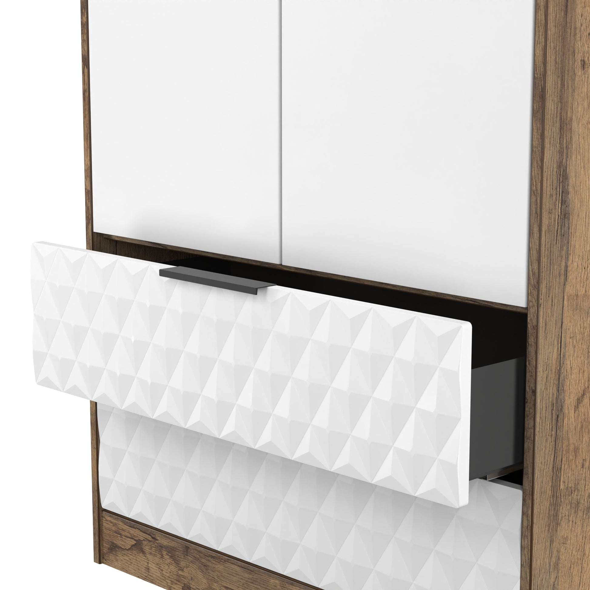 Harlequin Tall Wardrobe White & Oak 2 Drawers 197cm