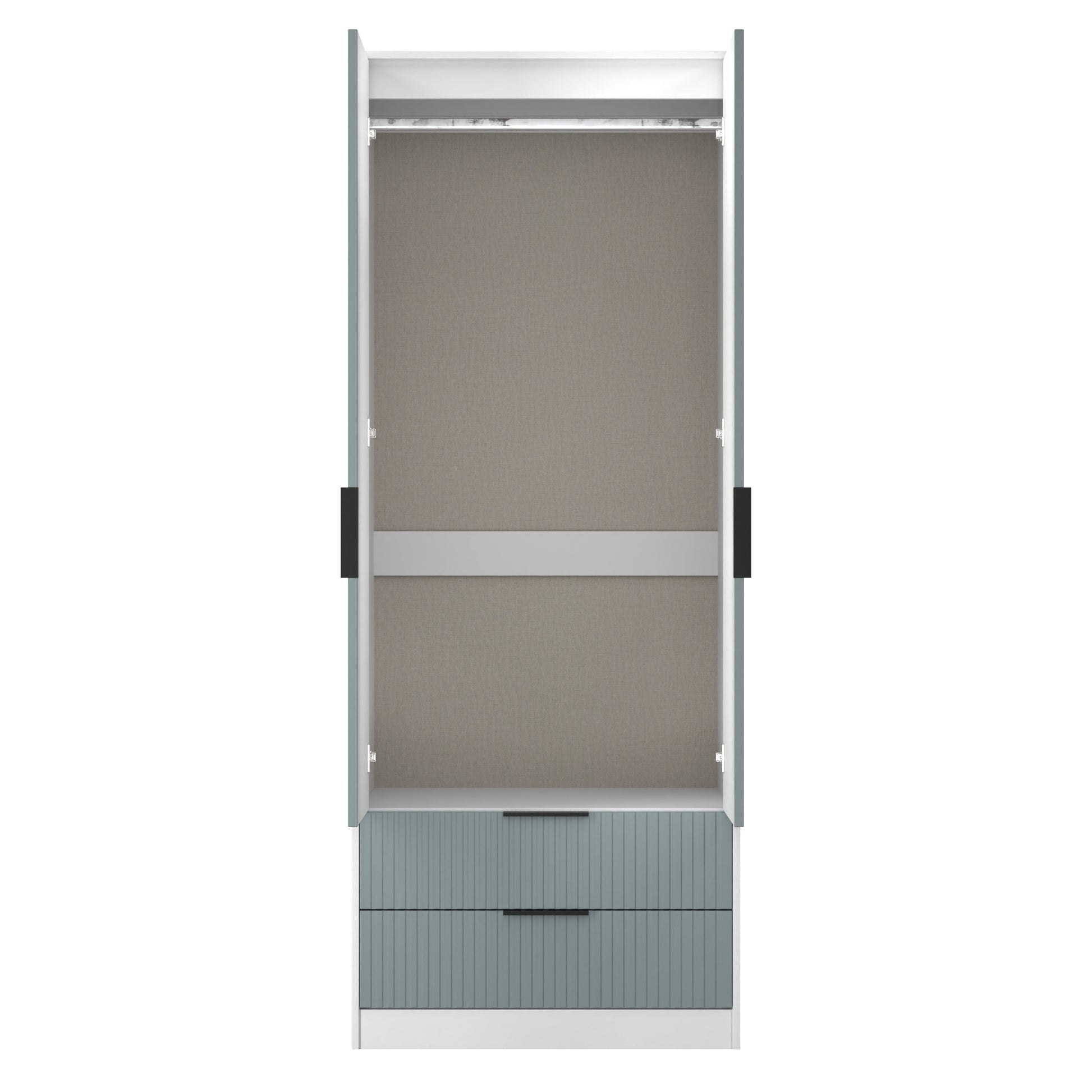 Fluted Tall Wardrobe Teal & White 2 Drawers 197cm