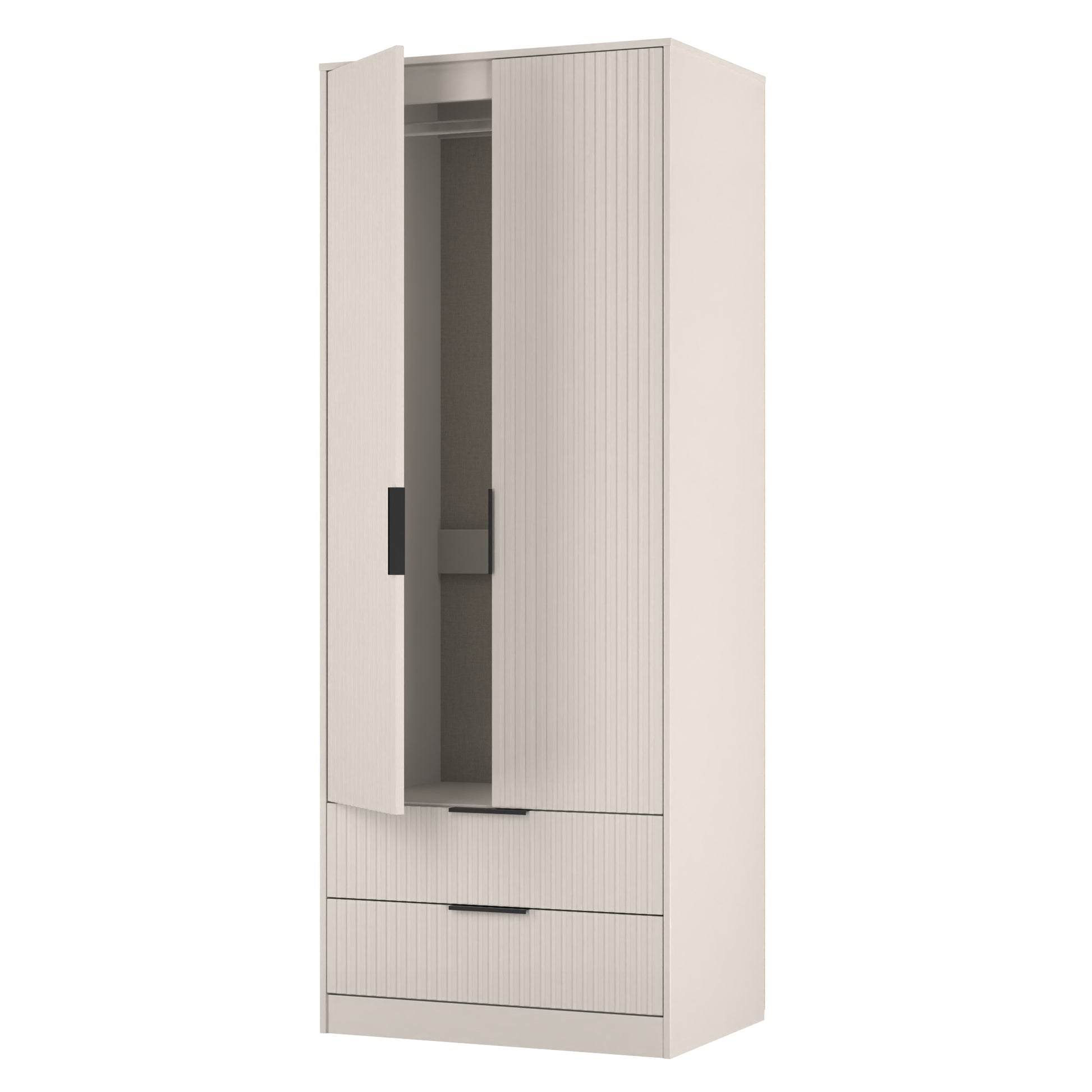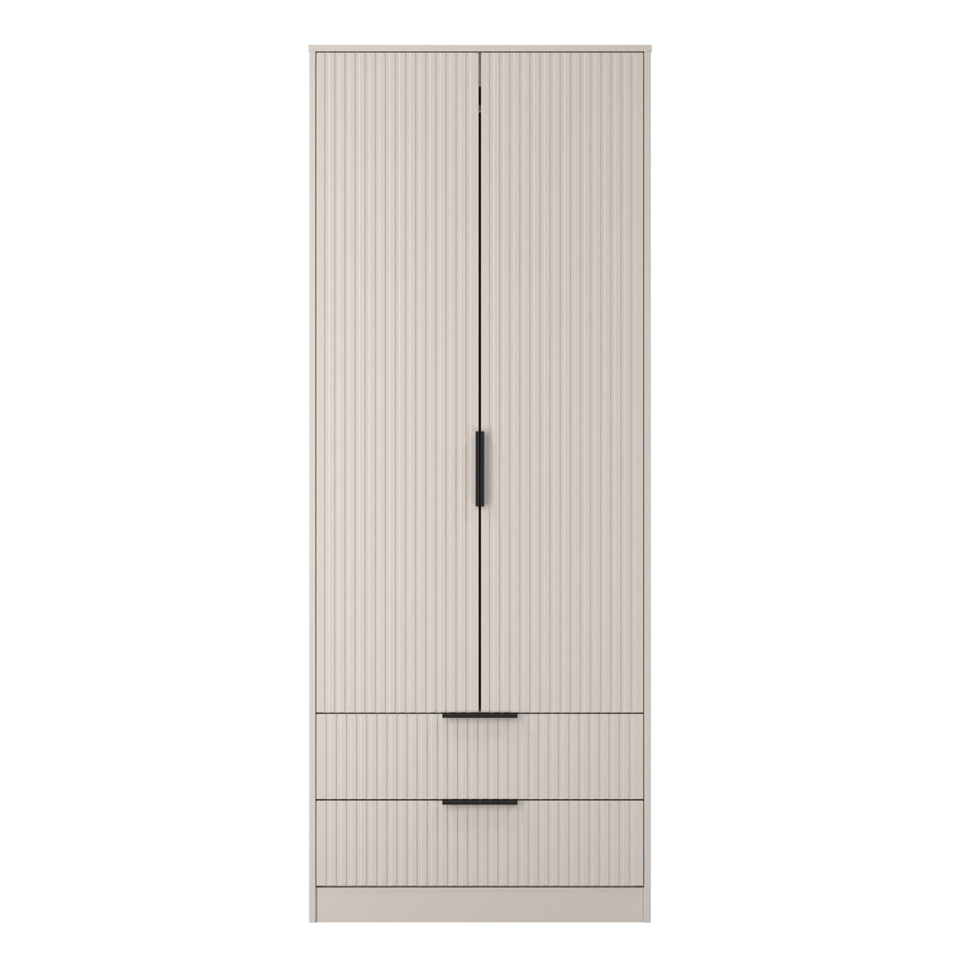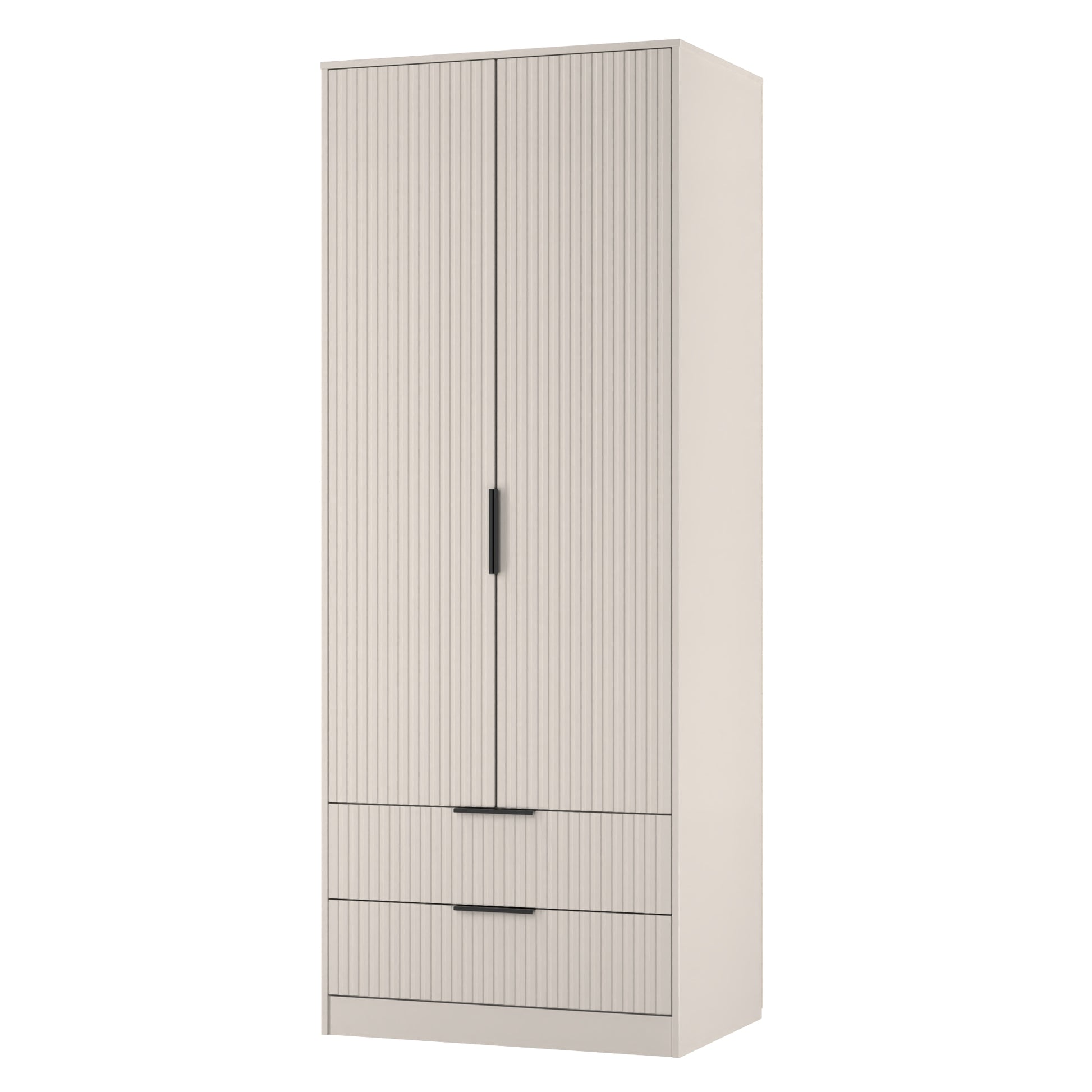 Fluted Tall Wardrobe Off-White 2 Drawers 197cm