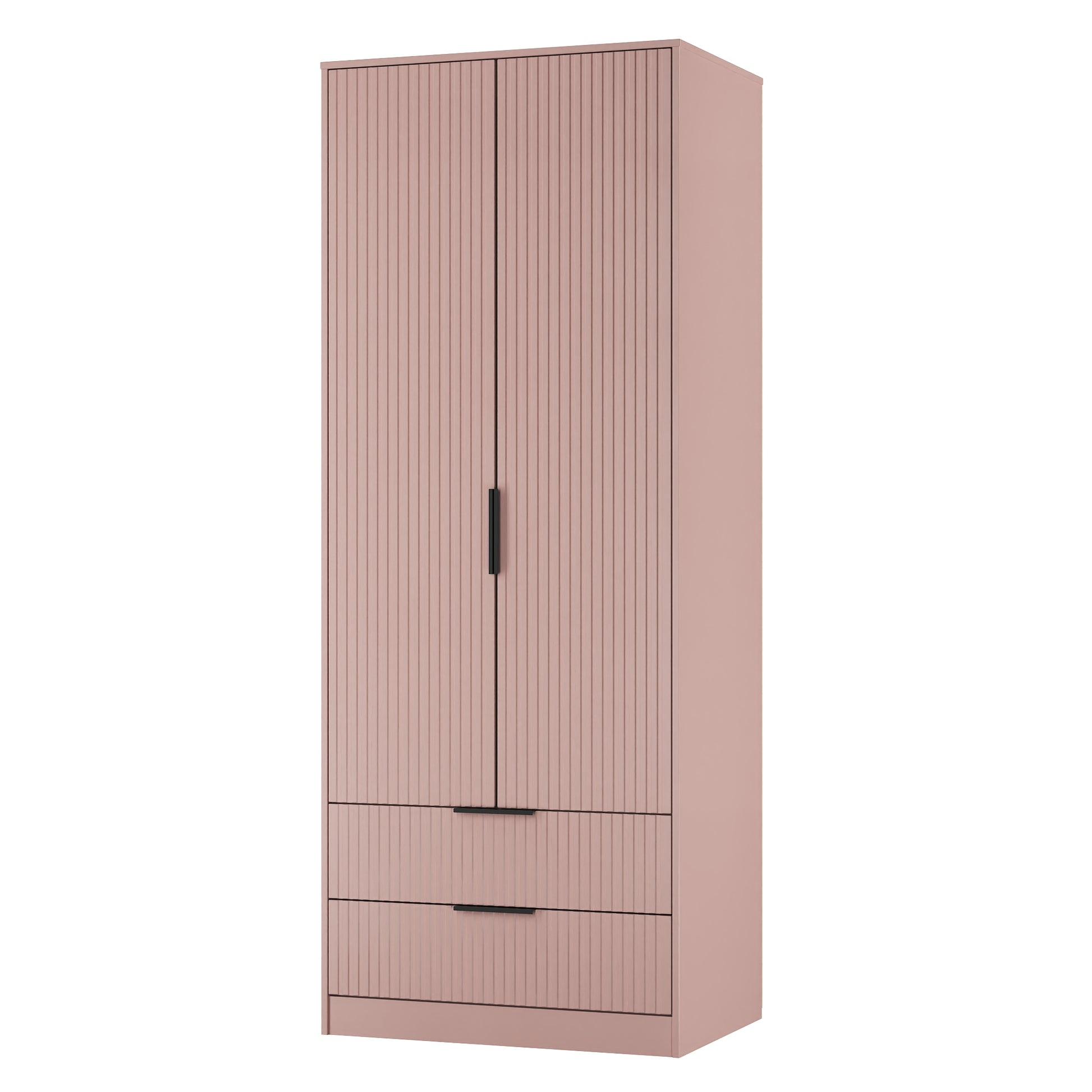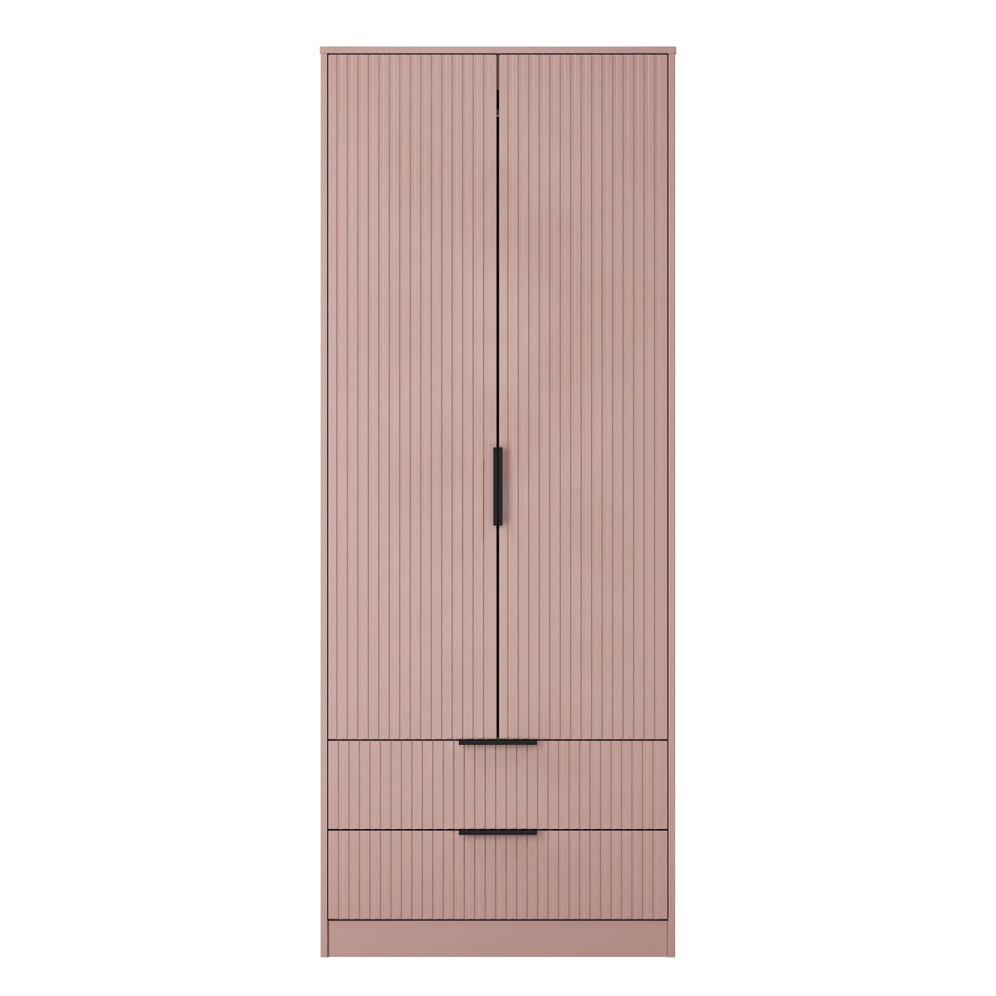 Fluted Tall Wardrobe Pink 2 Drawers 197cm