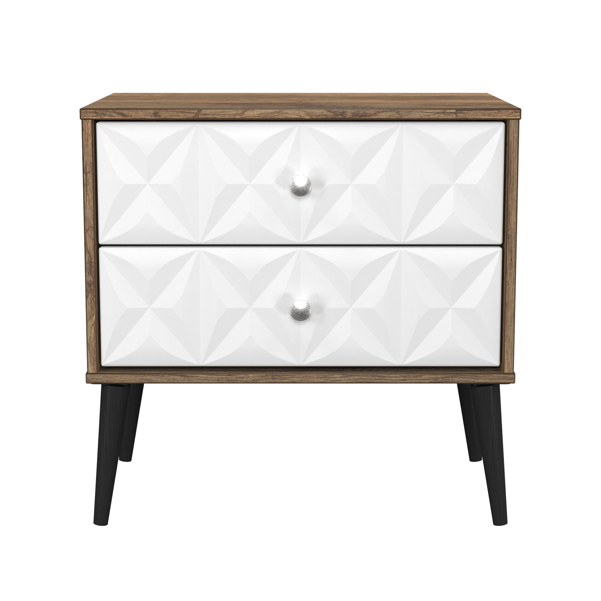 Pixel Side Table White & Vintage Oak 2 Drawers 58cm