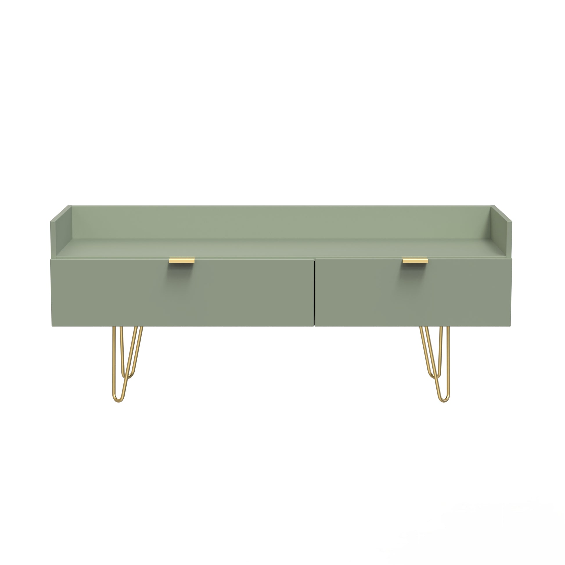 This media Console unit features 2 storage drawers on smooth metal runners. Modern and stylish, this striking range is available in a range of durable scratch resistant colour or natural wood finishes. With pull handles on all doors and drawers, with gold hairpin metal legs. Comes with Soft Close Drawers. All our furniture is made to order in the United Kingdom, to the highest quality. It is delivered within 10 working days direct to your location of choice by one of our two man delivery teams, and comes fully assembled (although legs may be removed to prevent damage in transit). Part of the Hong Kong F Collection.
