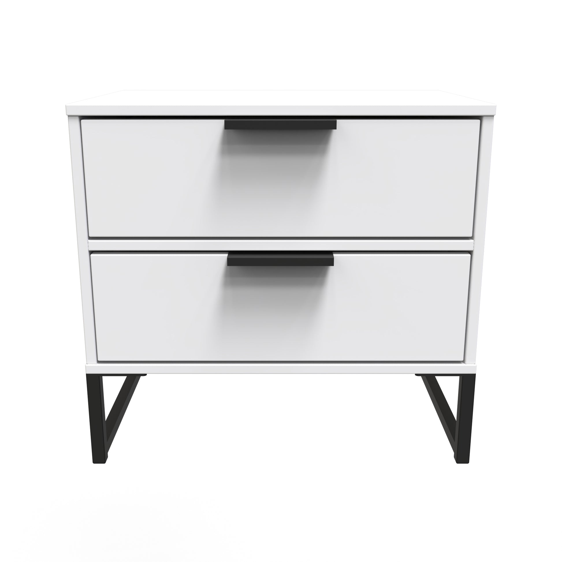 This modern storage cabinet features 2 large storage drawers. A truly unique style that will be the highlight of any bedroom. This furniture set is popular for its Scandinavian style and industrial feel. Constructed from sturdy materials with metal handles and frame legs. Elevate your space with this range, featuring plenty of storage, so it's incredibly practical for keeping rooms clutter free and tidy. All our furniture is made to order in the United Kingdom, to the highest quality. It is delivered within 10 working days direct to your location of choice by one of our two man delivery teams, and comes fully assembled (although legs may be removed to prevent damage in transit). Part of the Diego G Collection.