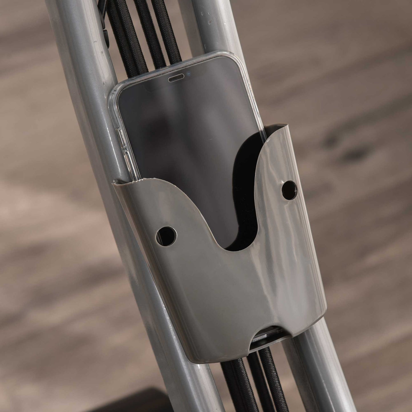 - LCD Monitor tracks time, speed, distance, calories burnt, a phone holder placed in front