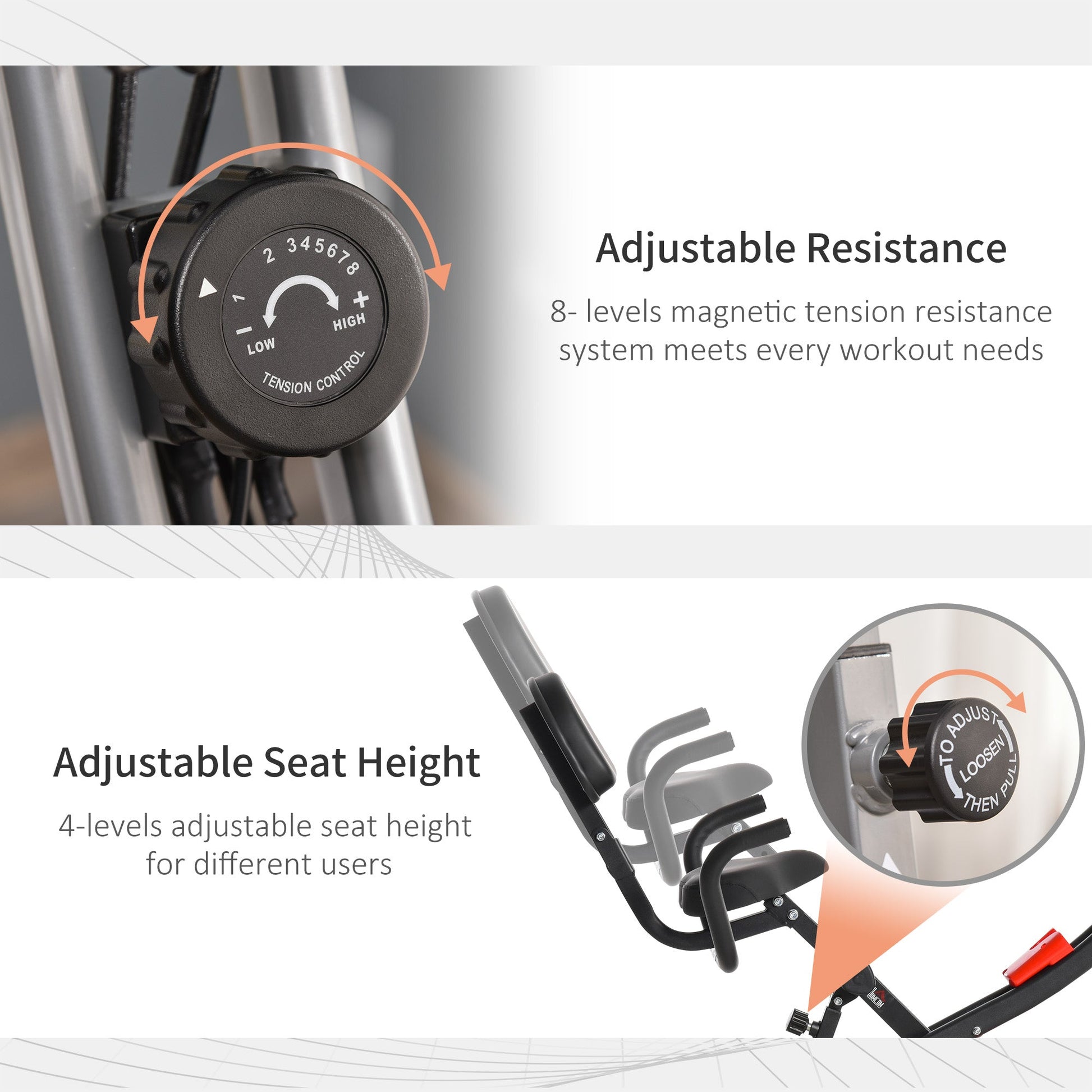 - Features an 8-level magnetic exercise adjustable resistance knob to cater your workout to you