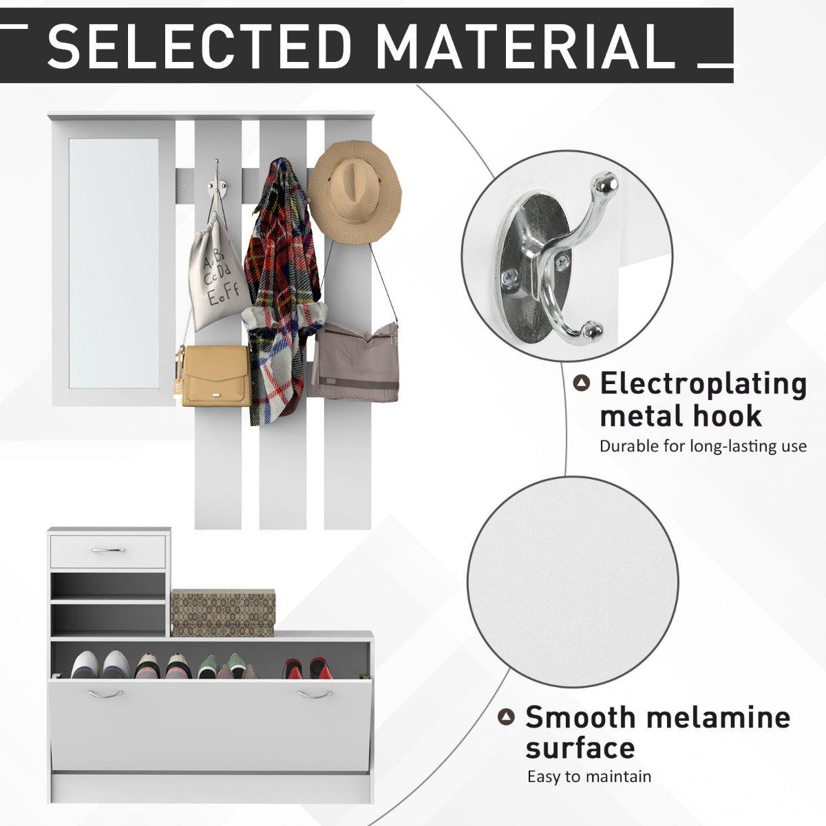 - 3-in-1 design with a mirror, hanging hooks and shoe storage