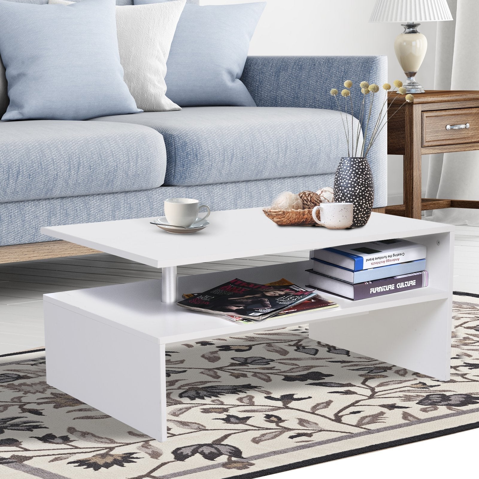 2-Tier Coffee Table Side/End Table Modern Rectangular Design w/ Open Shelf Living Room Entryway Hallway Furniture White