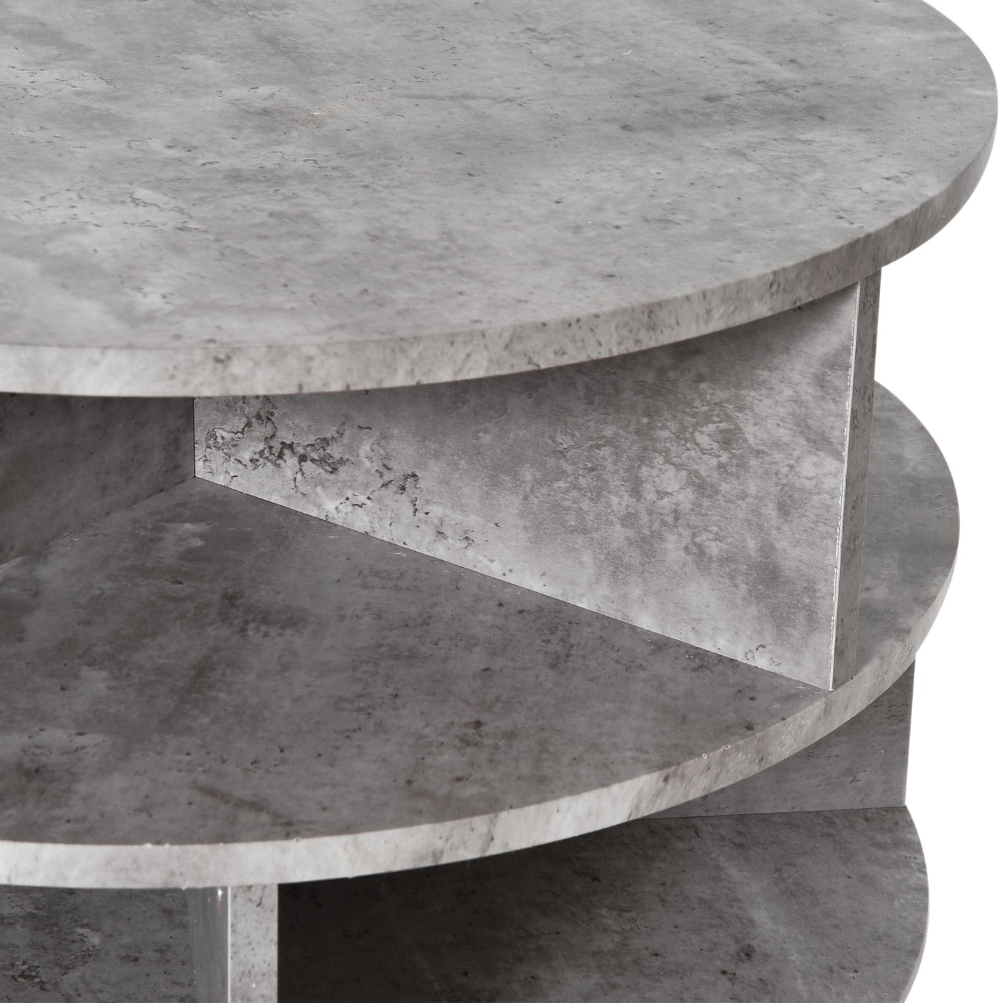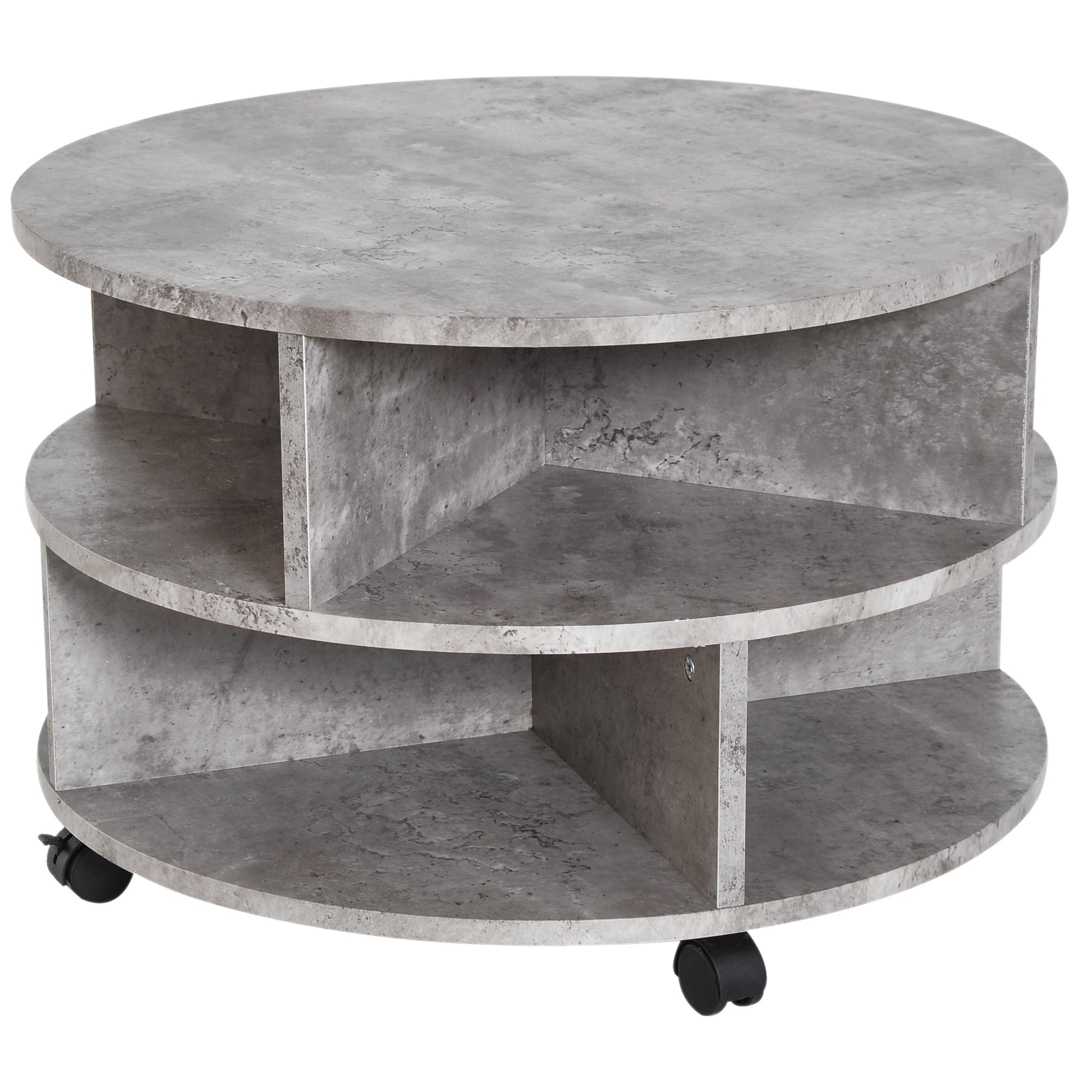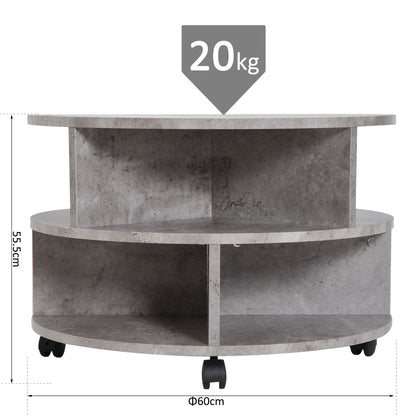 2 Tier Round Side End Table Coffee Desk with Divided Shelves Tea Table Storage Unit Living Room Organiser with Wheels - Cement colour