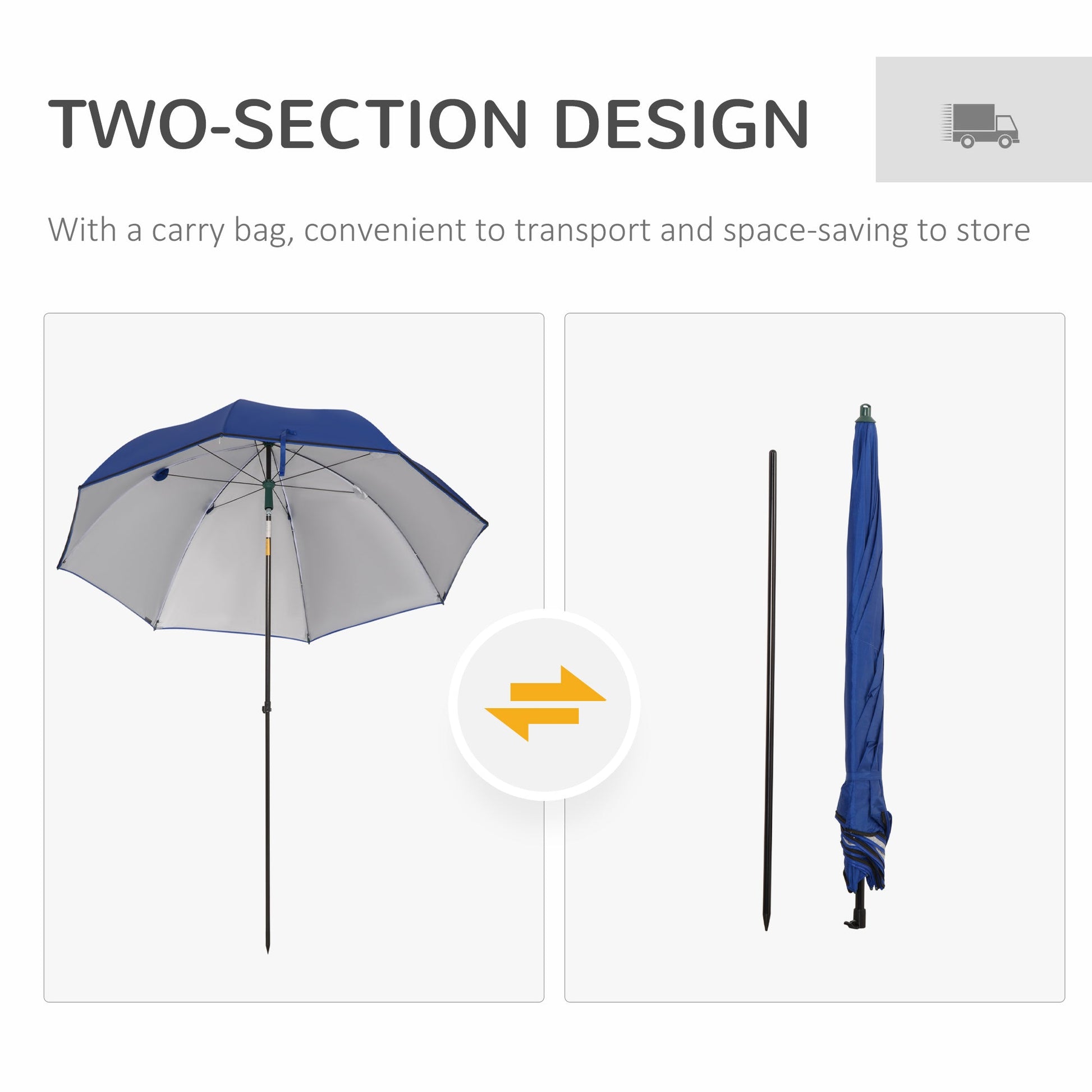 2m Beach Parasol Fishing Umbrella Brolly with Sides and Push Botton Tilt Sun Shade Shelter with Carry Bag