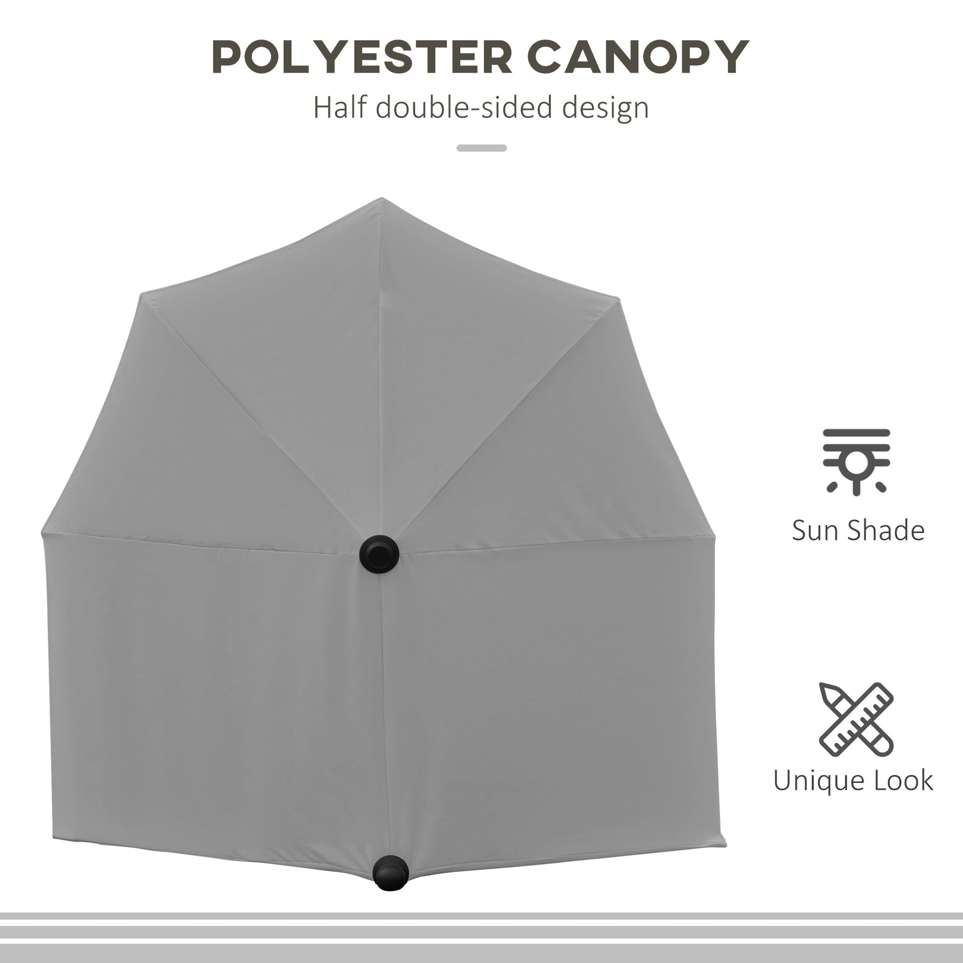 - Half balcony parasol to stand against flat surfaces, double canopy for plenty of safe shade