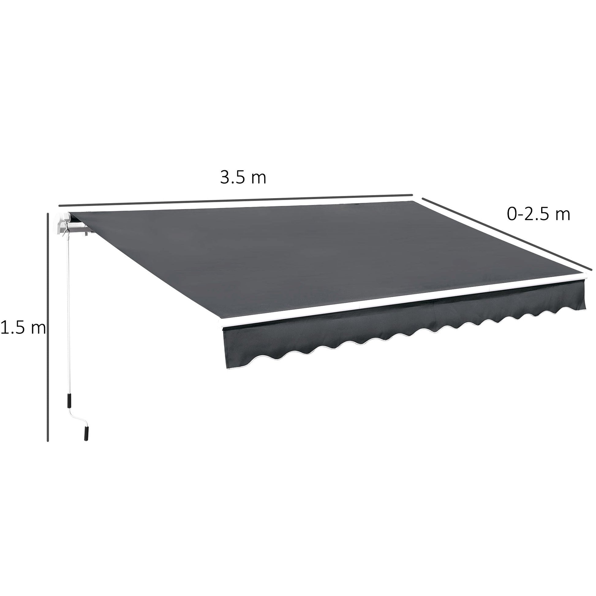 With a thick sun-shielding canopy fixed on an aluminium frame, this 3.5 x 2.5m awning from Outsunny will give you all the shade you need this season. The manual design means you can set it up wherever needed - whether it's above a door or window, and it easily mounts onto your chosen surface with all accessories included in the package. Finished with a crank handle for easy operation. It's time to enjoy the beauty of the Summer more than ever before.