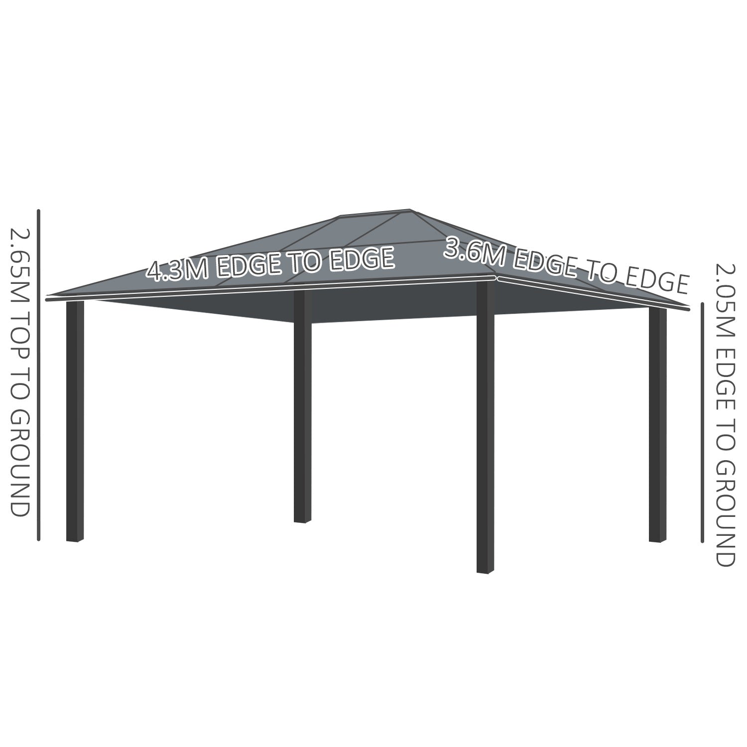 3.6 x 4m Hardtop Gazebo Canopy with Polycarbonate Roof and Aluminium Frame