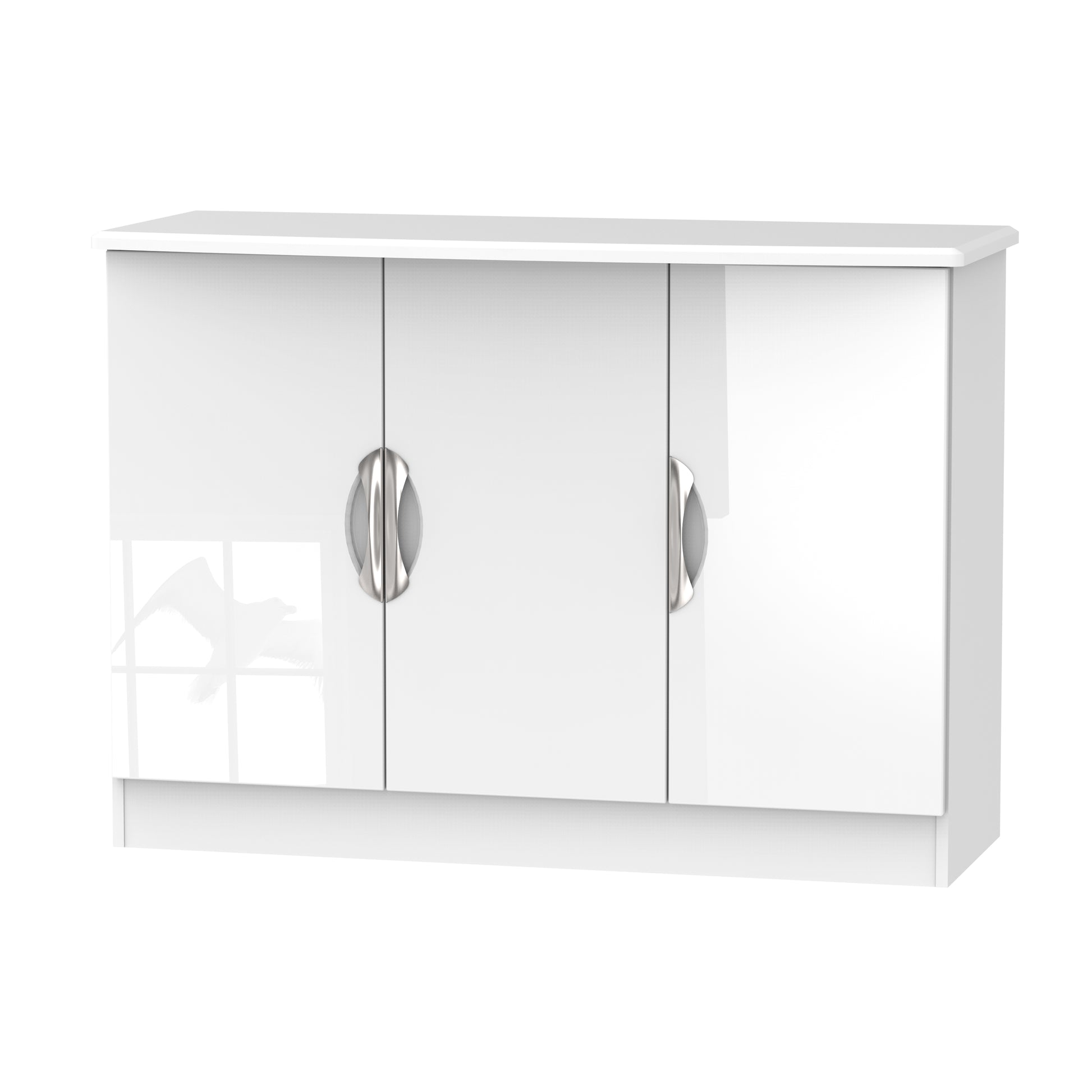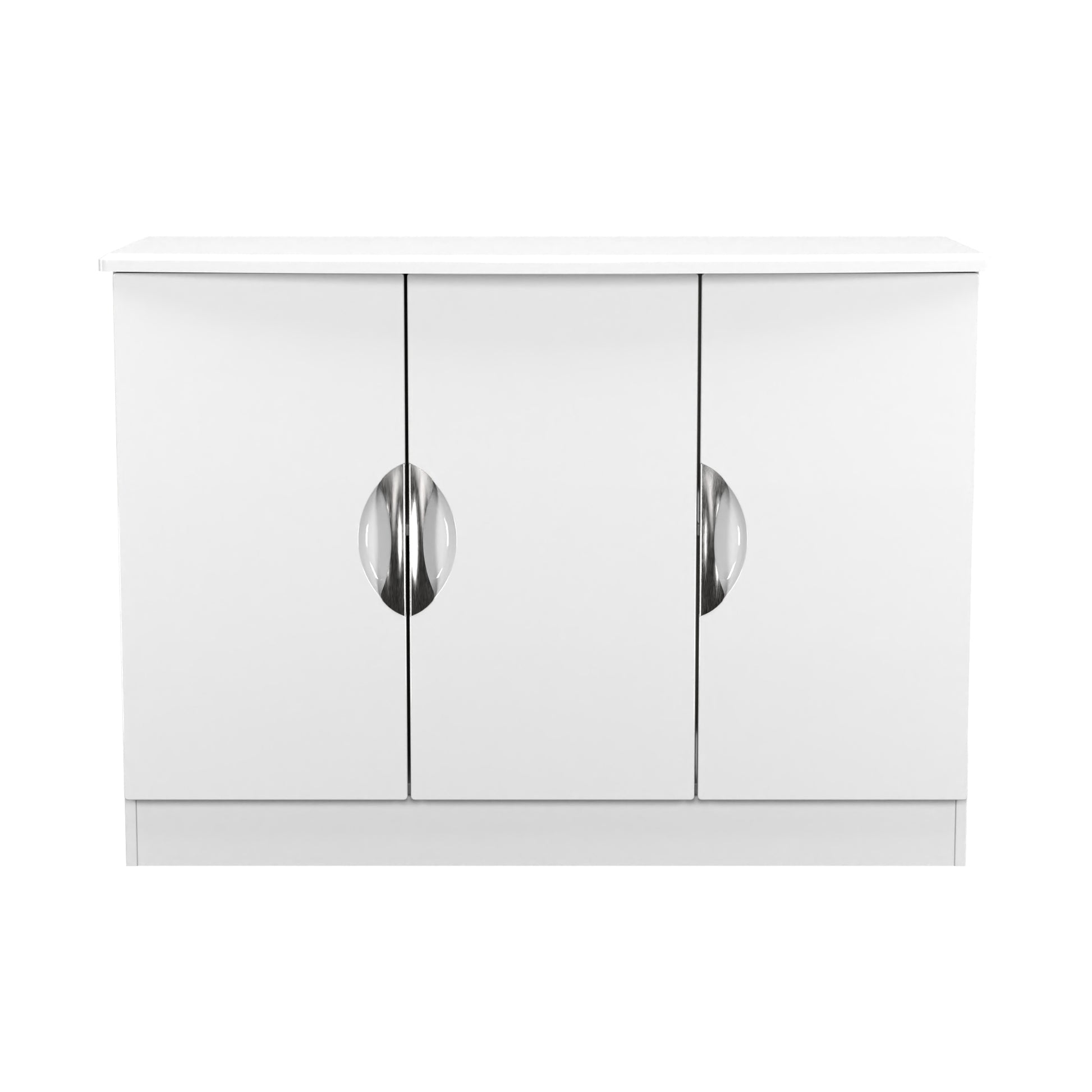 This 3 door wide storage cupboard has internal shelves and is perfect for any living room, dinning room or louge. Could also be used as a TV/Media stand or side board. Boasting a clean, contemporary look and pleasing practicality, the furniture range makes a seamless addition to any modern looking home. The range offers an array of practical, organised space for items both large and small that will help keep your room neat and tidy. All pieces have a scratch-resistant veneer to help prevent the wear and tear that can come with everyday usage, while the extensive colour options of the drawers and doors is complemented by distinctive cut-out handles and a smooth finish for a great mix of style and functionality. All our furniture is made to order in the United Kingdom, to the highest quality. It is delivered within 10 working days direct to your location of choice by one of our two man delivery teams, and comes fully assembled (although legs may be removed to prevent damage in transit). Part of the Camden Collection.