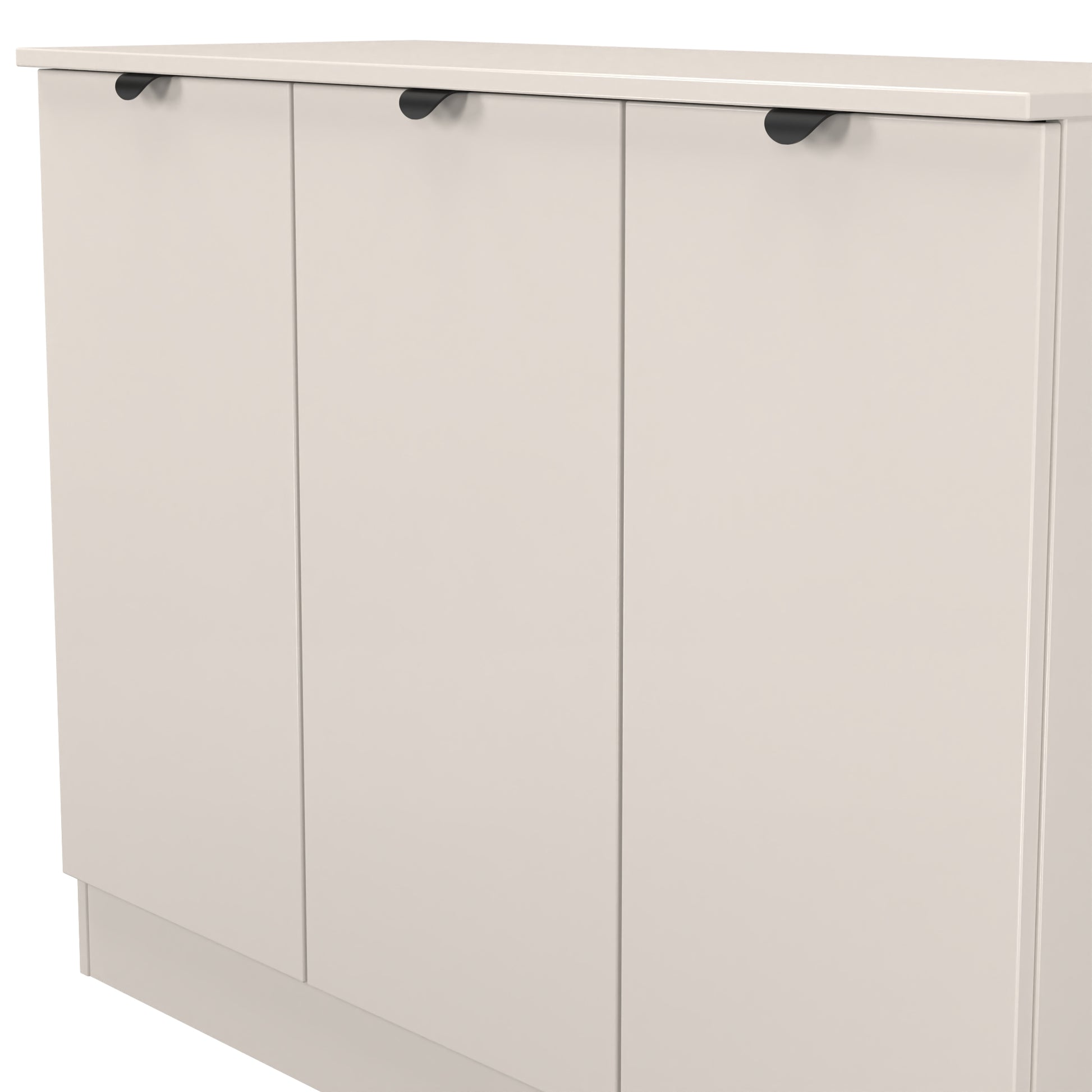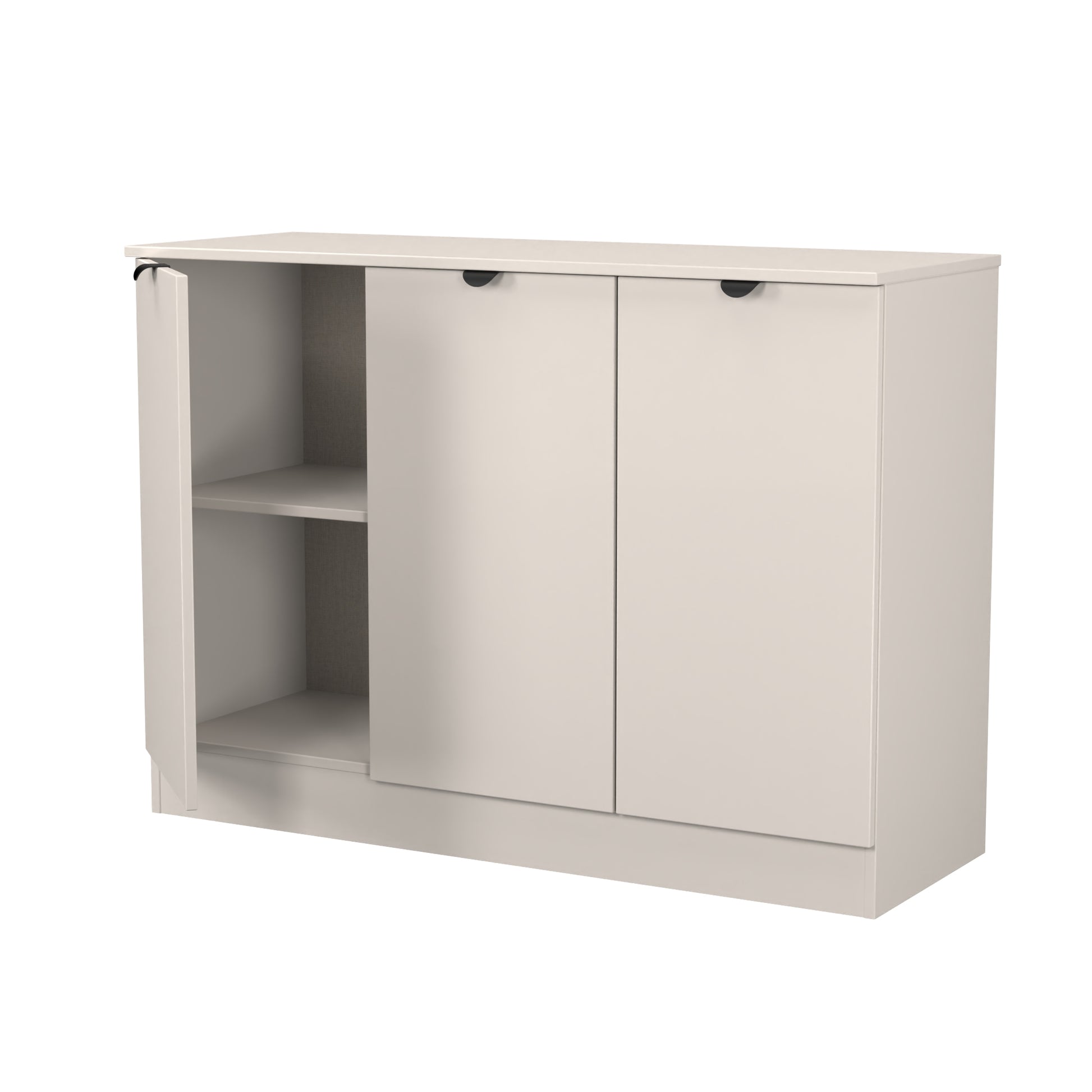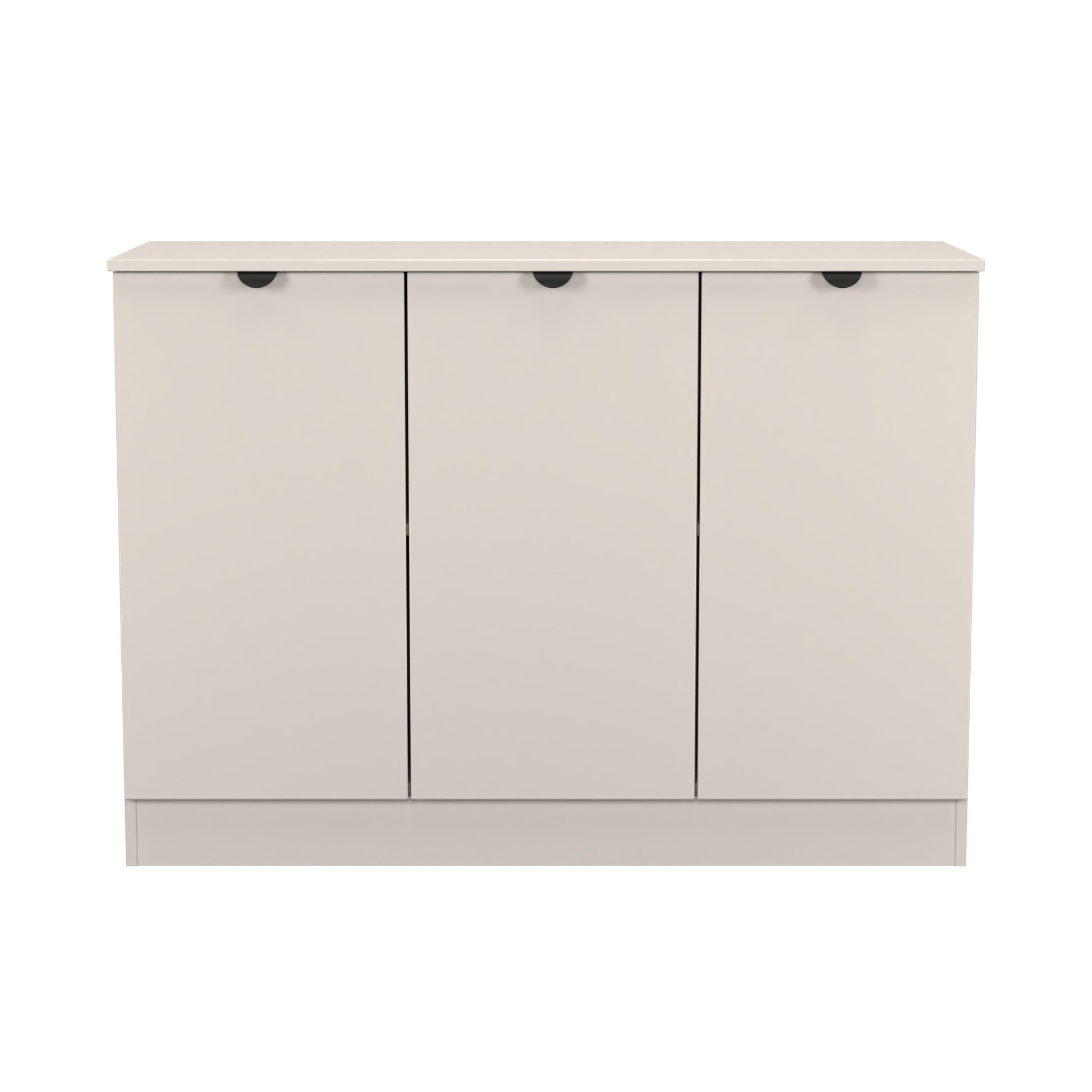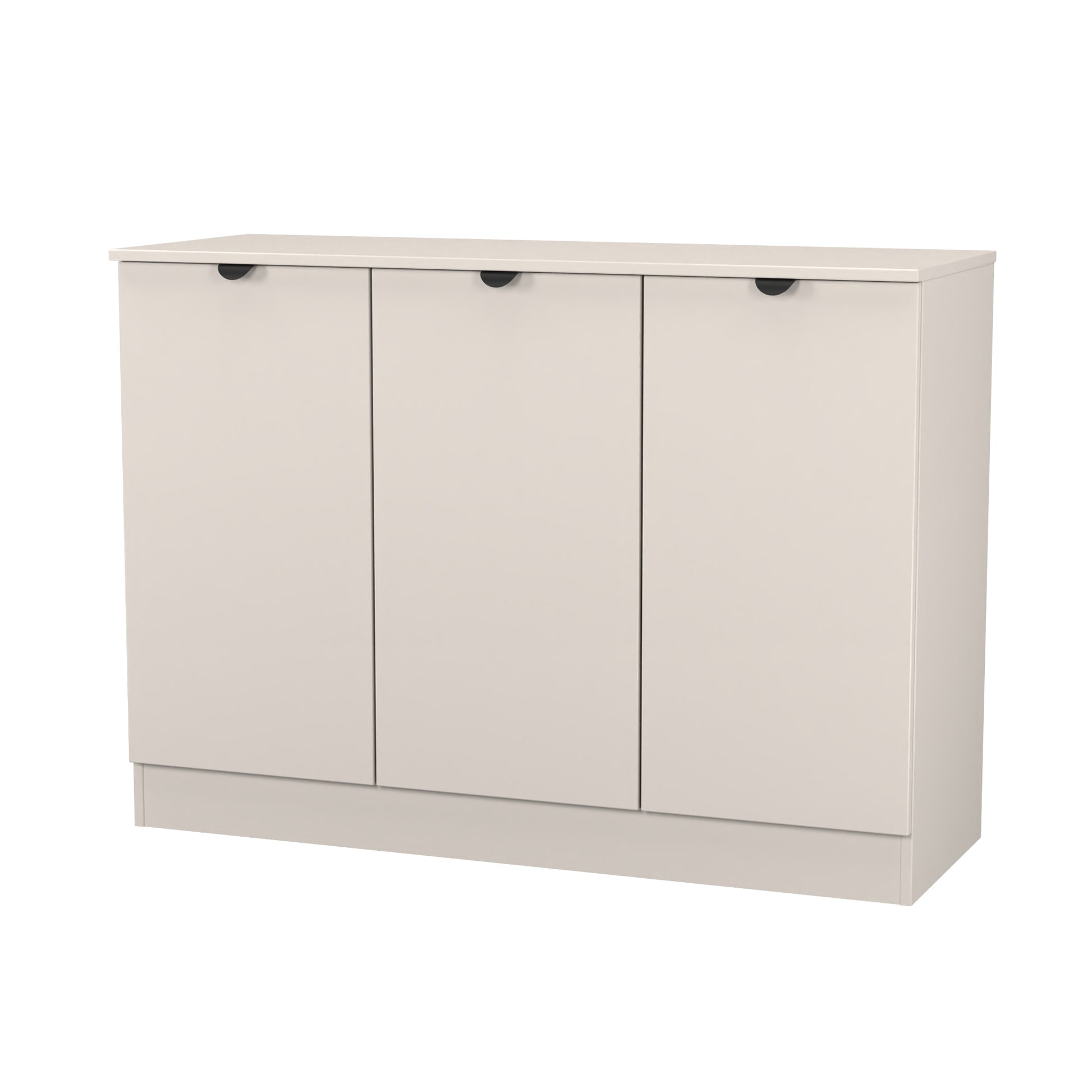 This 3 door wide storage cupboard has internal shelves and is perfect for any living room, dinning room or louge. Could also be used as a TV/Media stand or side board.This modern practical range really stands out. With Semi-Circular Black metal Pull handles and many pieces featuring open shelf storage, making this affordable range both stylish and practical.All our furniture is made to order in the United Kingdom, to the highest quality using responsibly sourced materials. It is delivered within 10 working days direct to your location of choice by one of our two man delivery teams, and comes fully assembled (although items with legs will have those legs removed during transit to avoid damage). Part of the Bora Collection.