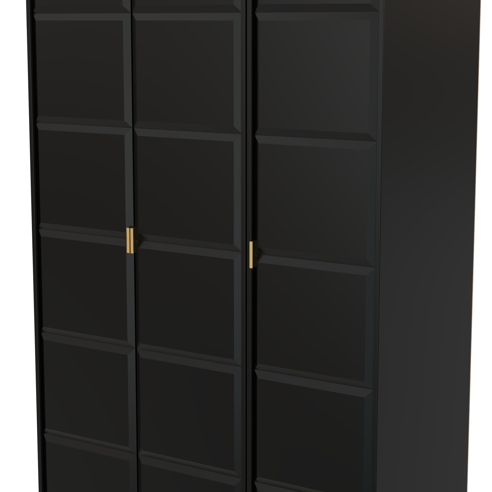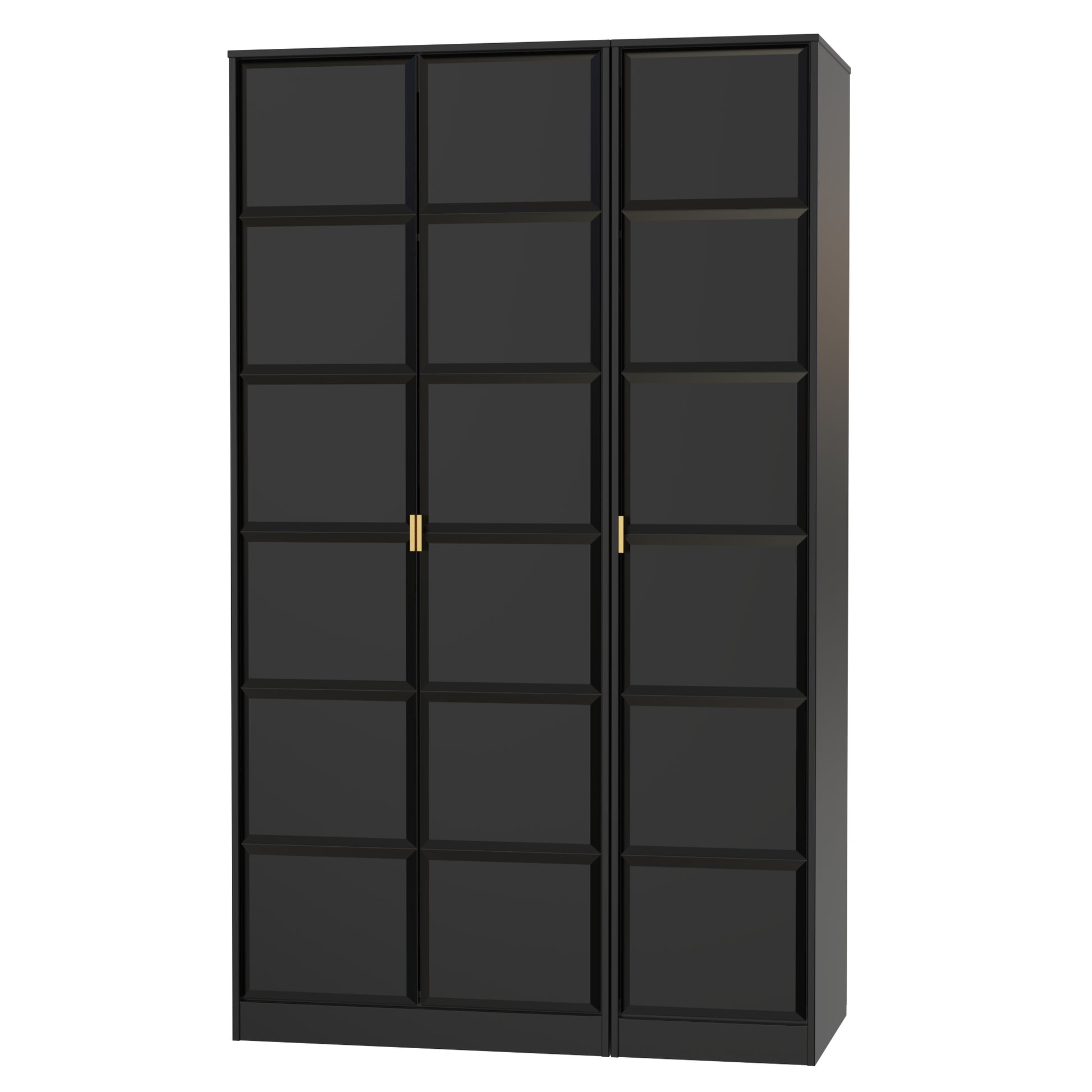 Cube Tall Wardrobe Black 3 Doors 1 Shelf 198cm