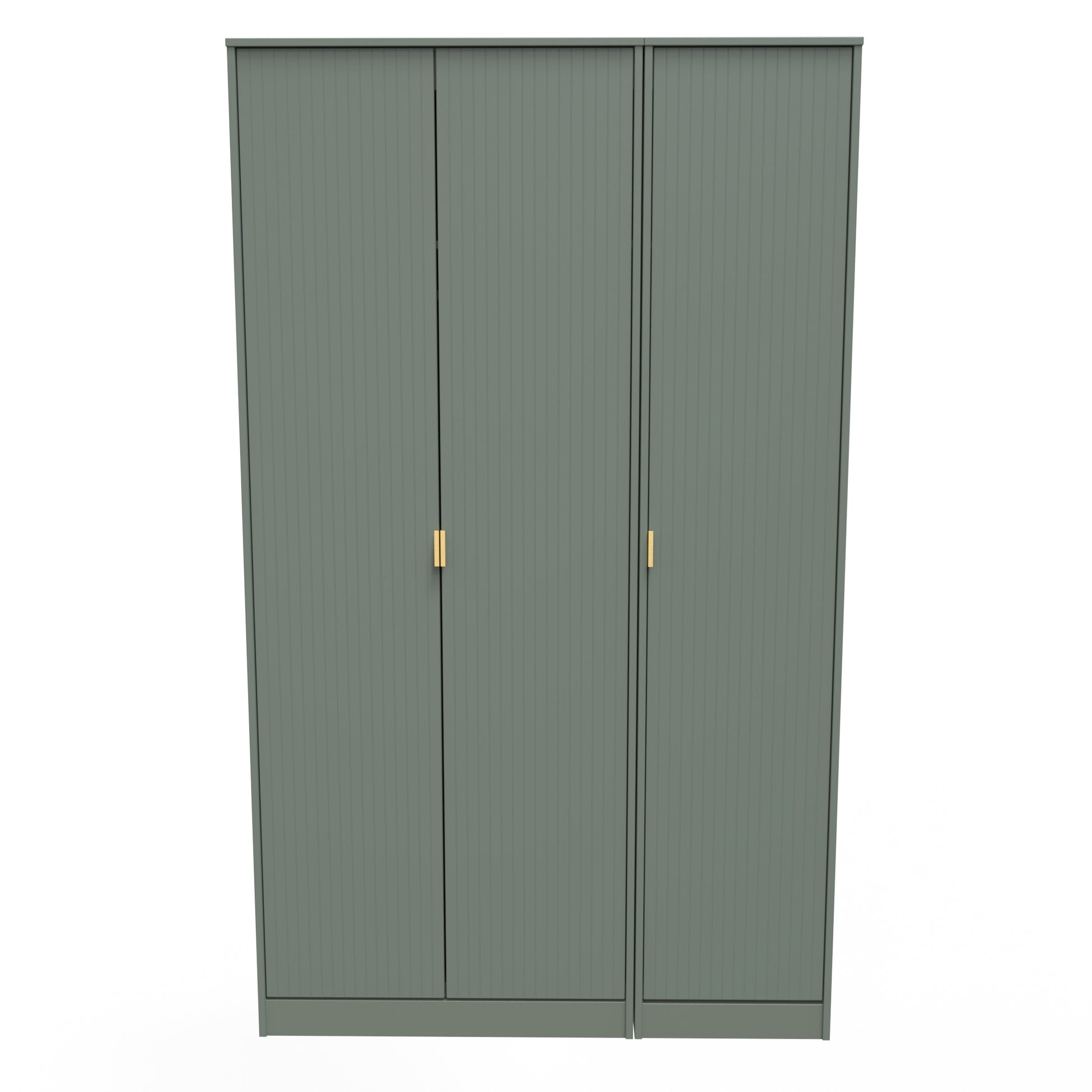 This tall triple 3 door wardrobe is perfect for any bedroom when a normal wardrobe is just not large enough. This ranges unique aesthetic is best represented by the distinctive "Linear" patten of the drawer and door fronts. Also features Gold Metal Handles and Gold Hairpin Legs. Comes in a wide range of colours including eye cathching two tone colour combinations. All our furniture is made to order in the United Kingdom, to the highest quality. It is delivered within 10 working days direct to your location of choice by one of our two man delivery teams, and comes fully assembled (although legs may be removed to prevent damage in transit). Part of the Linear Collection.