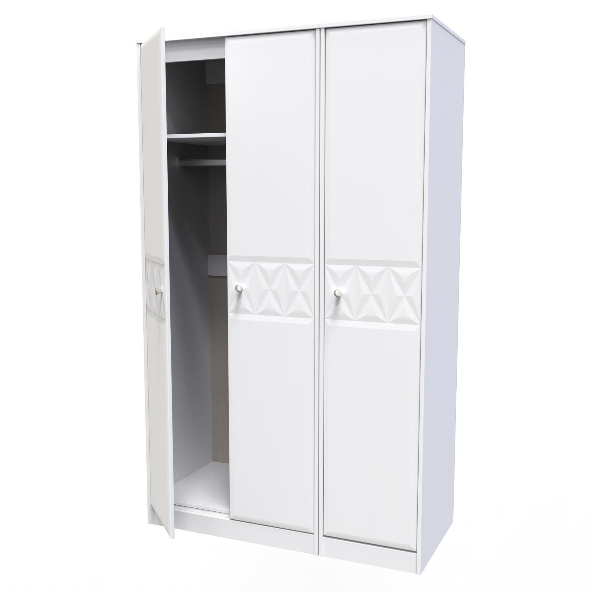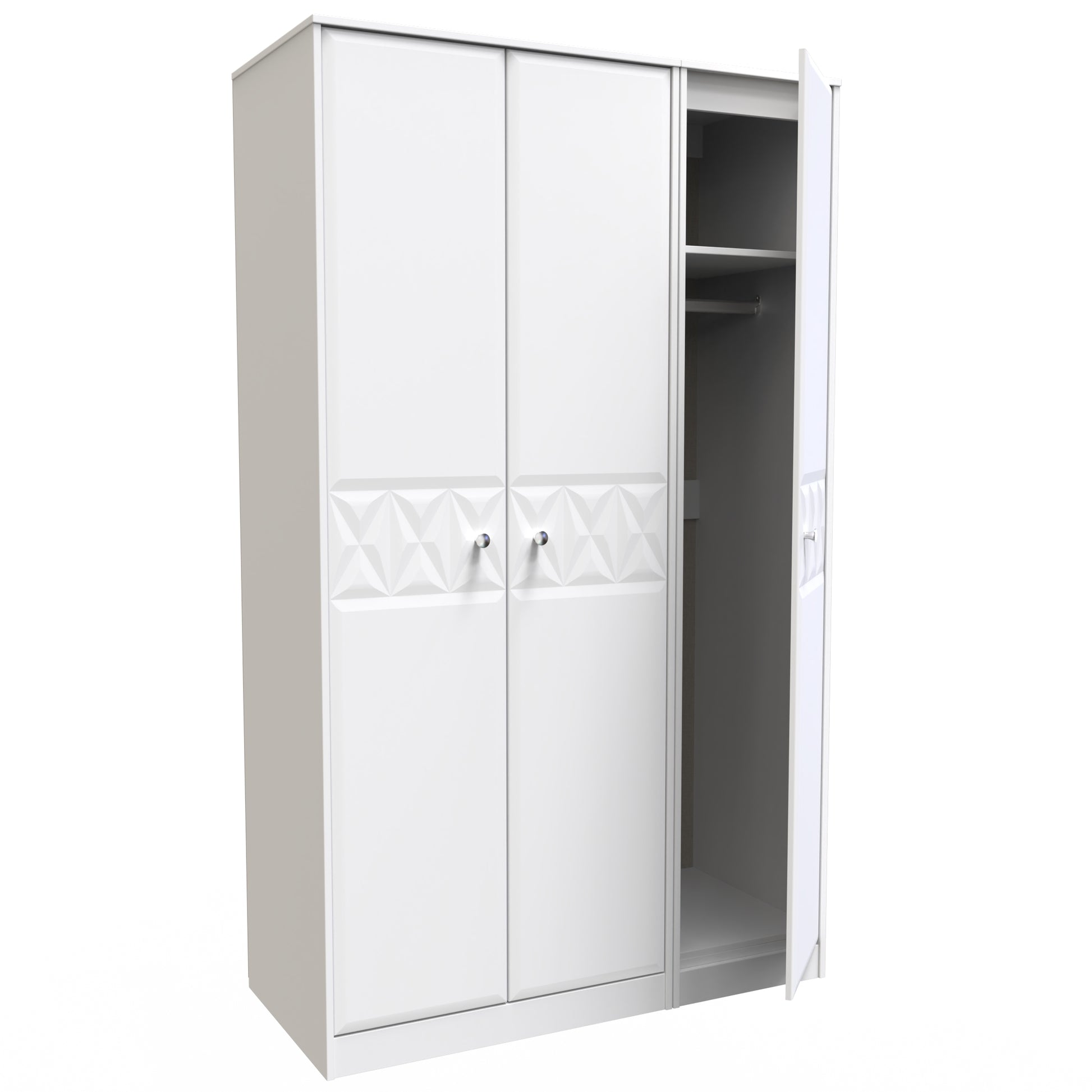 Pixel Tall Wardrobe White 3 Doors 1 Shelf 116cm