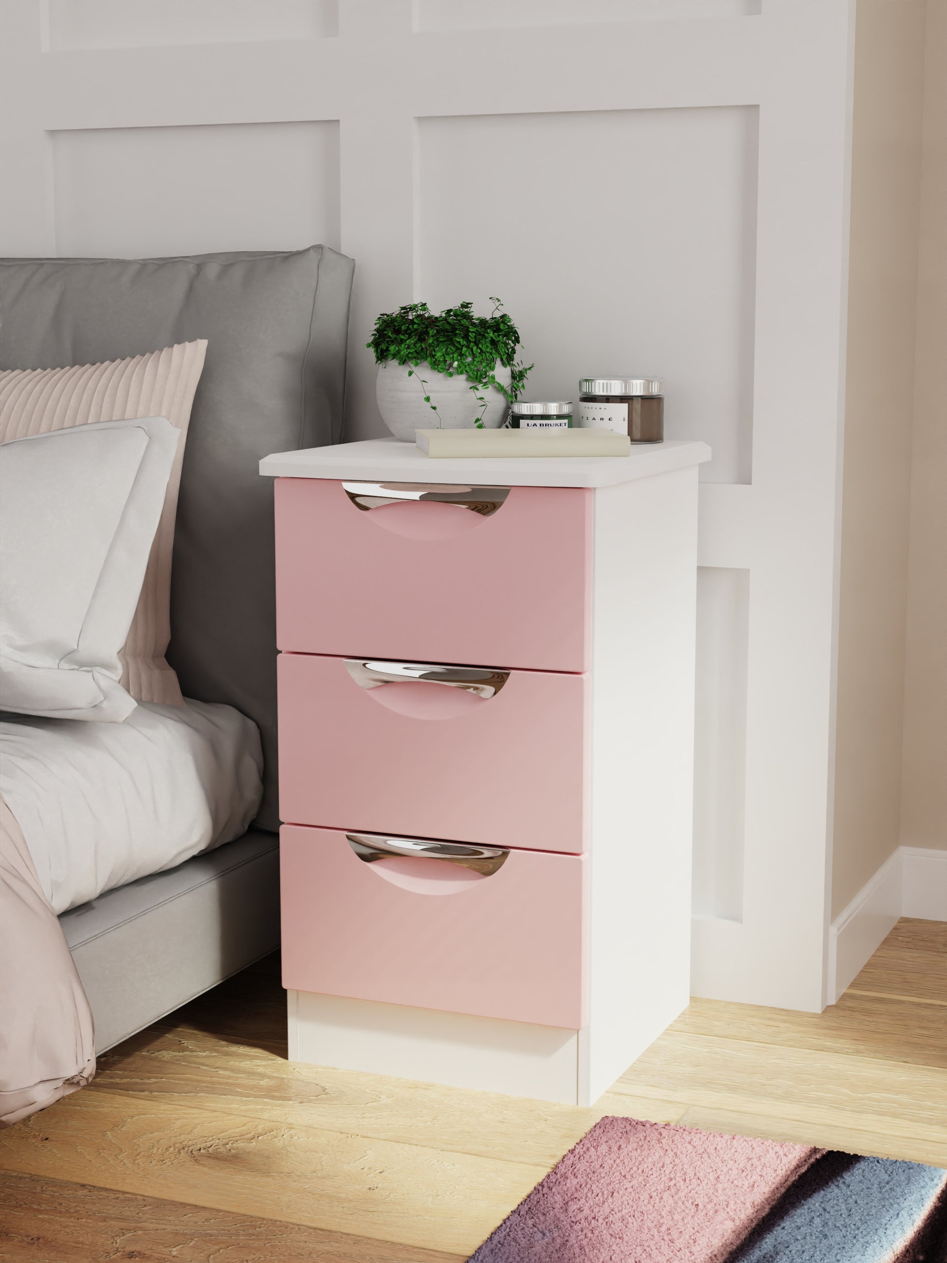 Camden Bedside Table Pink & White 3 Drawers 70cm