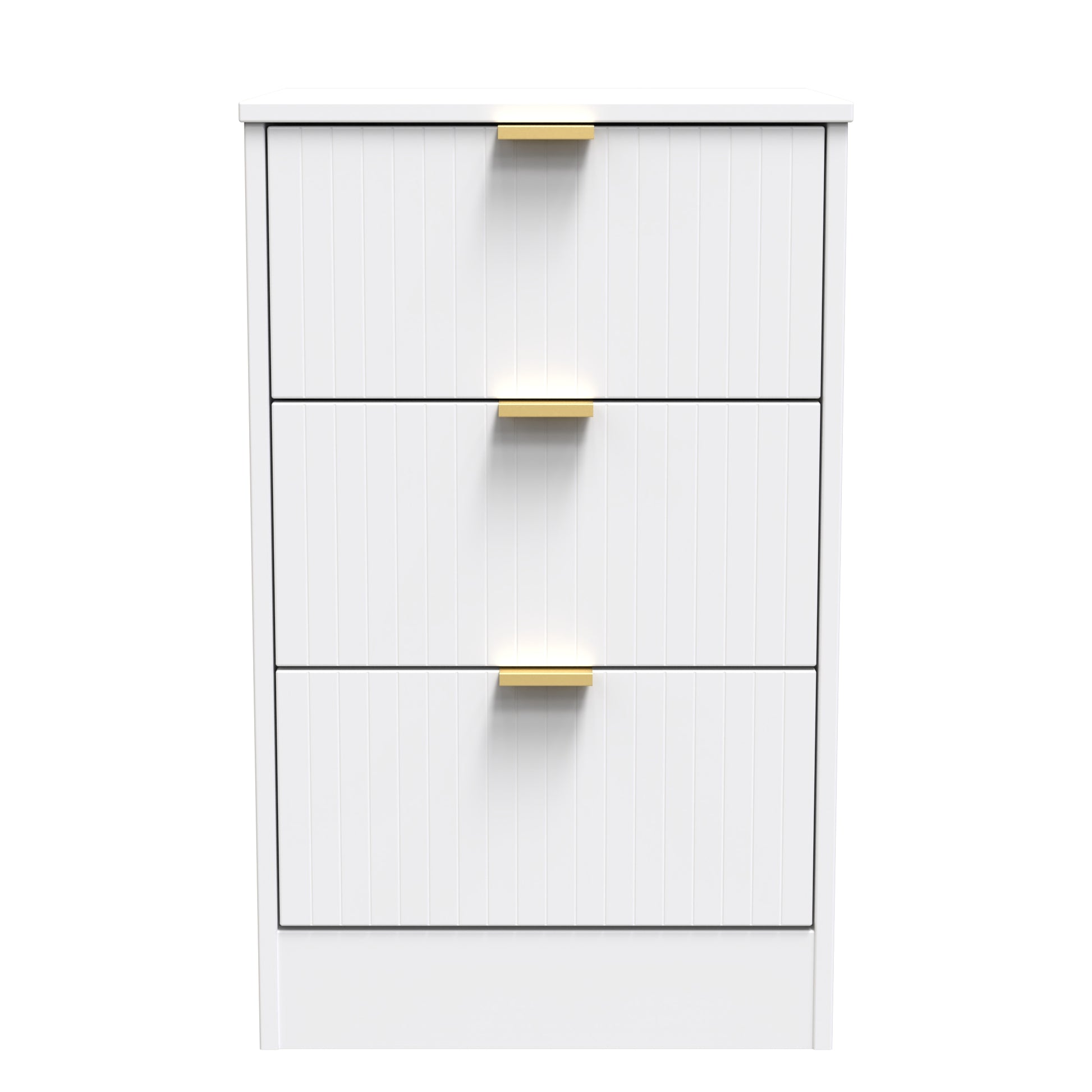 This 3 drawer bedside cabinet is practical and stylish. Perfect for any bedside or as a free standing storage unit. This contemporary range with its vertical linear pattern is perfect to showcase any space in your home. From Bedroom to living room Nashville blends into any setting with a wide range of stylish colours and finishes, we show what is needed to build your modern paradise. Part of the Nashville F Collection.