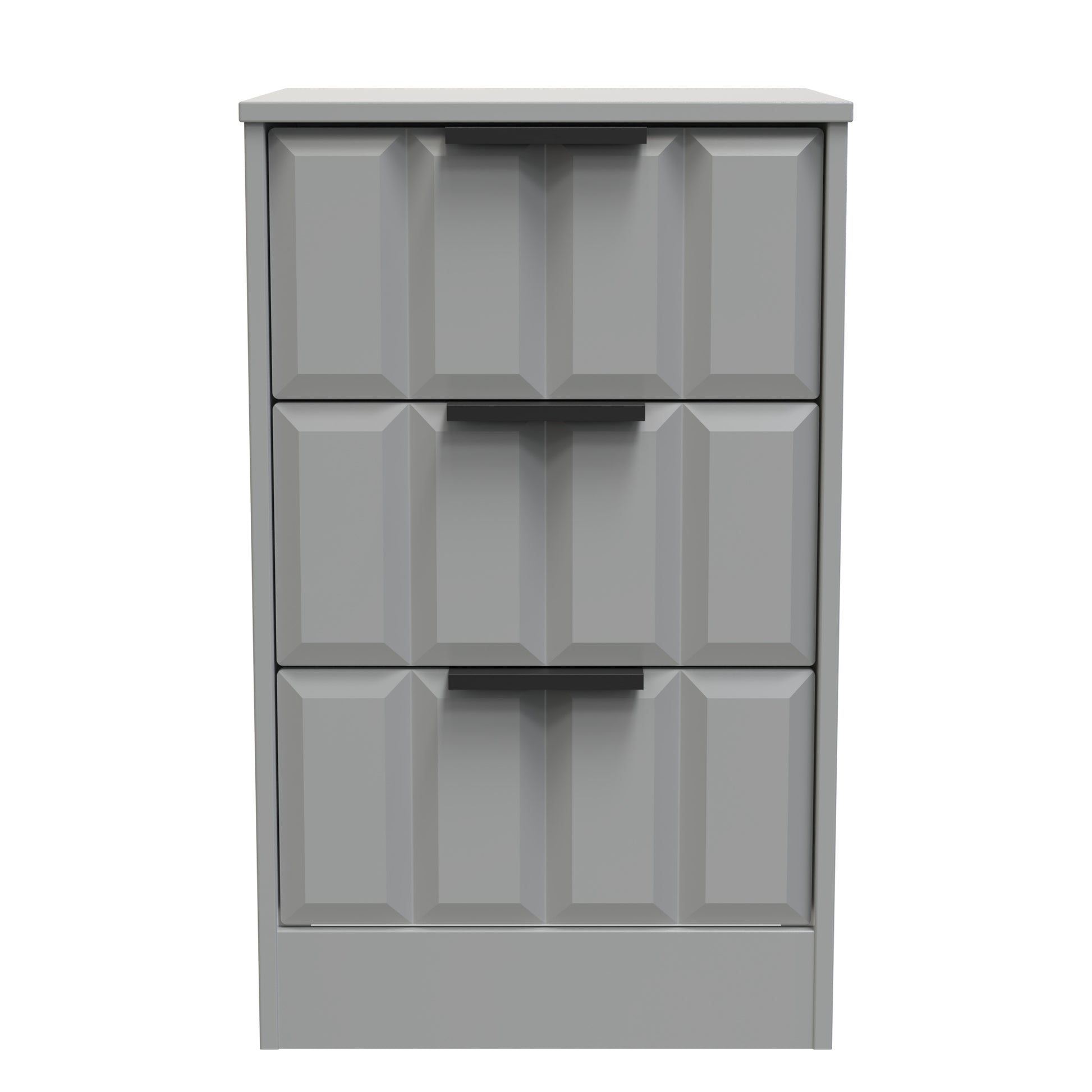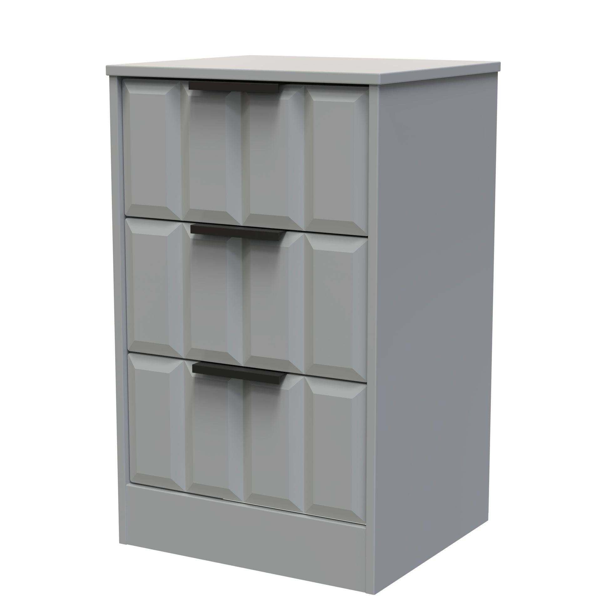This 3 drawer bedside cabinet is practical and stylish. Perfect for any bedside or as a free standing storage unit. Elevate your texture palette with an item from this modern and stylish range. Elevating the feel of the room through adding depth to the furniture surface. Use it to compliment or contrast the room, helping to improve the visual interaction. Part of the New York C Collection.