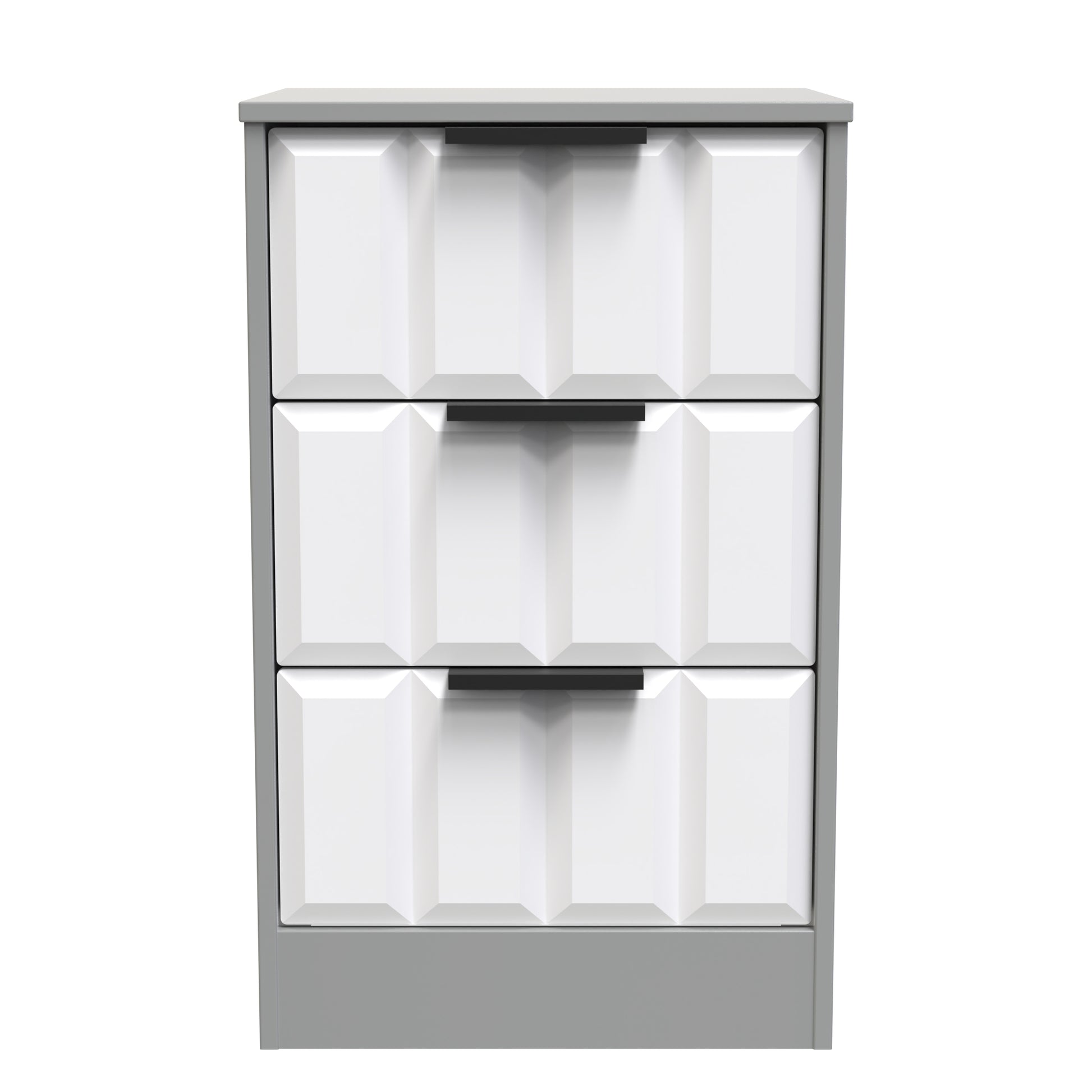 This 3 drawer bedside cabinet is practical and stylish. Perfect for any bedside or as a free standing storage unit. Elevate your texture palette with an item from this modern and stylish range. Elevating the feel of the room through adding depth to the furniture surface. Use it to compliment or contrast the room, helping to improve the visual interaction. Part of the New York C Collection.