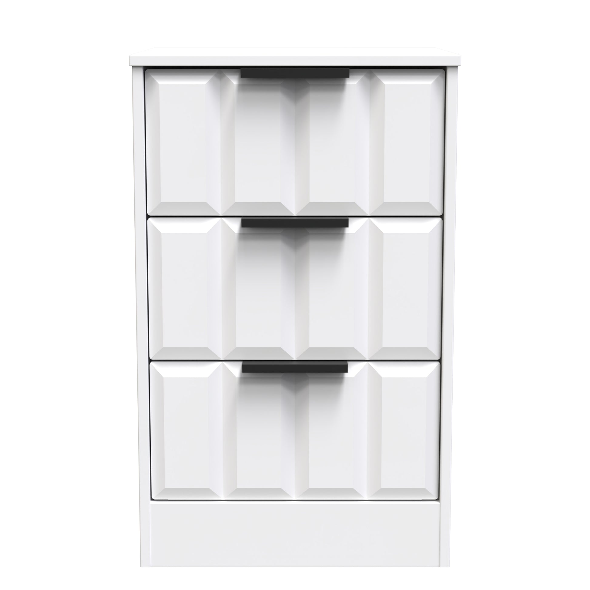 This 3 drawer bedside cabinet is practical and stylish. Perfect for any bedside or as a free standing storage unit. Elevate your texture palette with an item from this modern and stylish range. Elevating the feel of the room through adding depth to the furniture surface. Use it to compliment or contrast the room, helping to improve the visual interaction. Part of the New York C Collection.