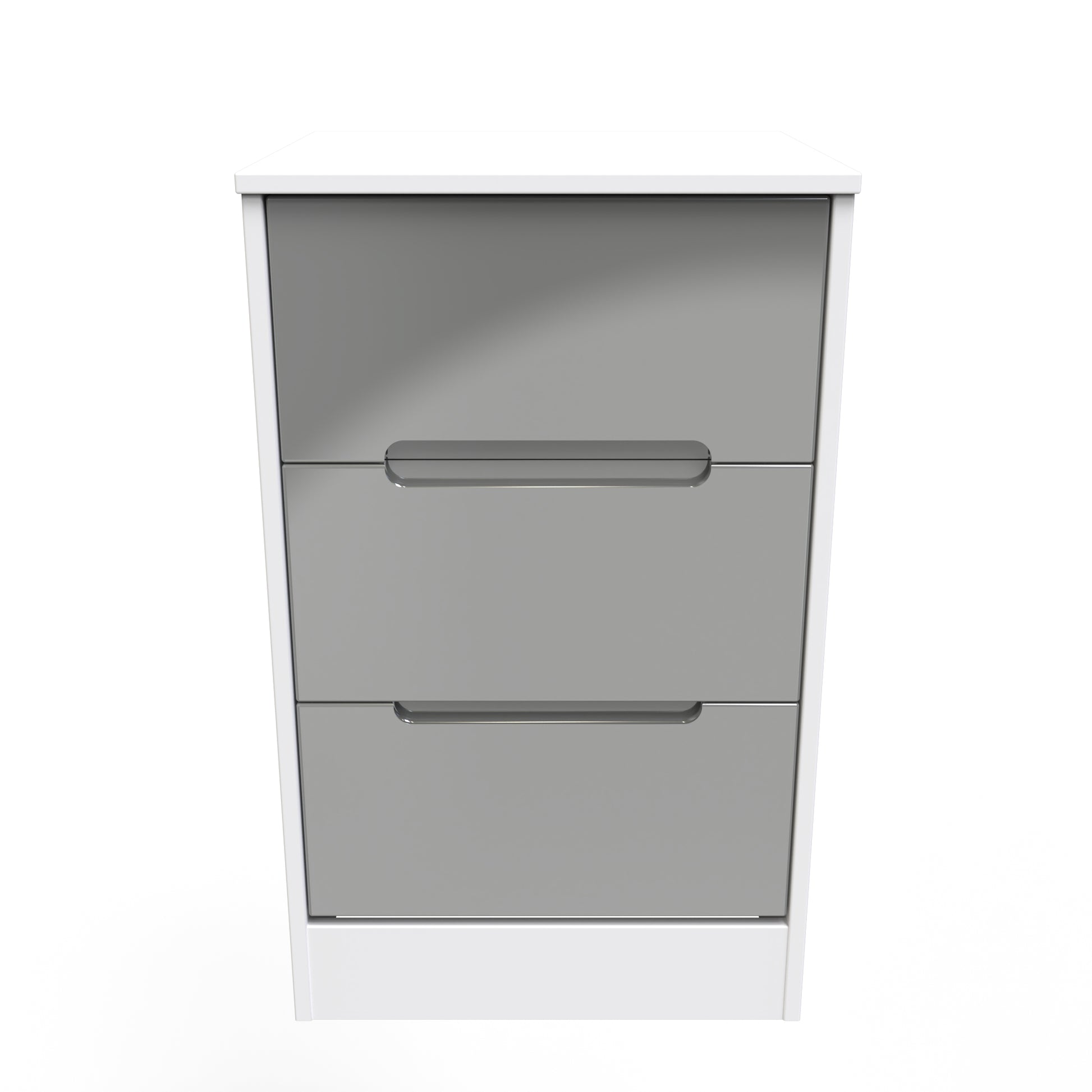 Monaco Bedside Table Grey & White 3 Drawers 73cm