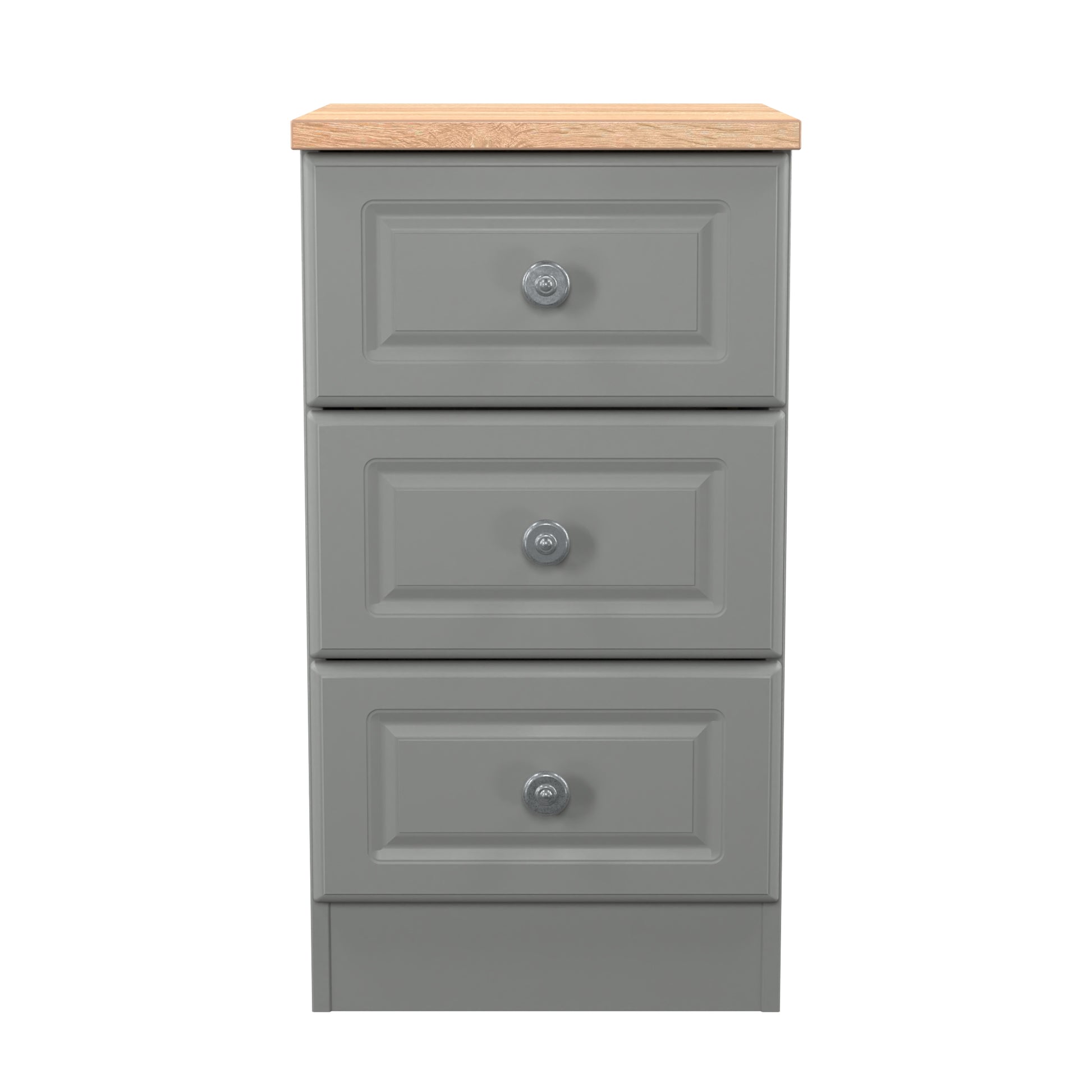 Norfolk Bedside Table Grey & Light Oak 3 Drawers 37cm