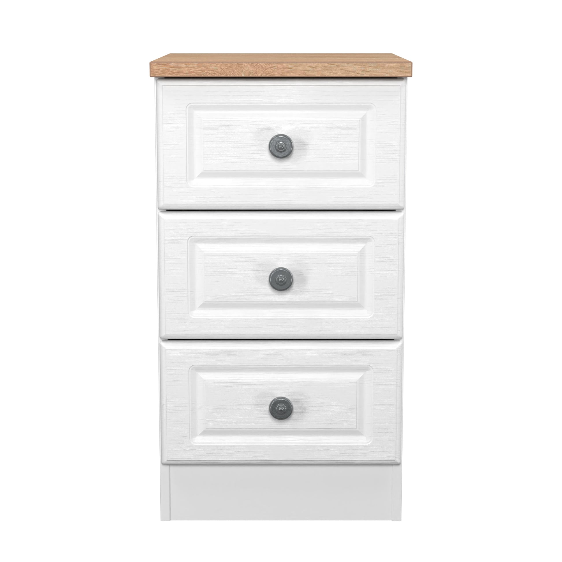 Norfolk Bedside Table White & Light Oak 3 Drawers 37cm