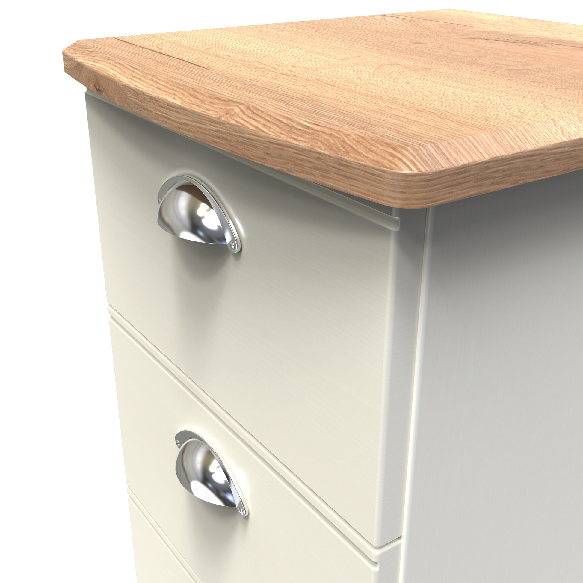 Victoria Bedside Table Cream & Light Oak 3 Drawers 40cm